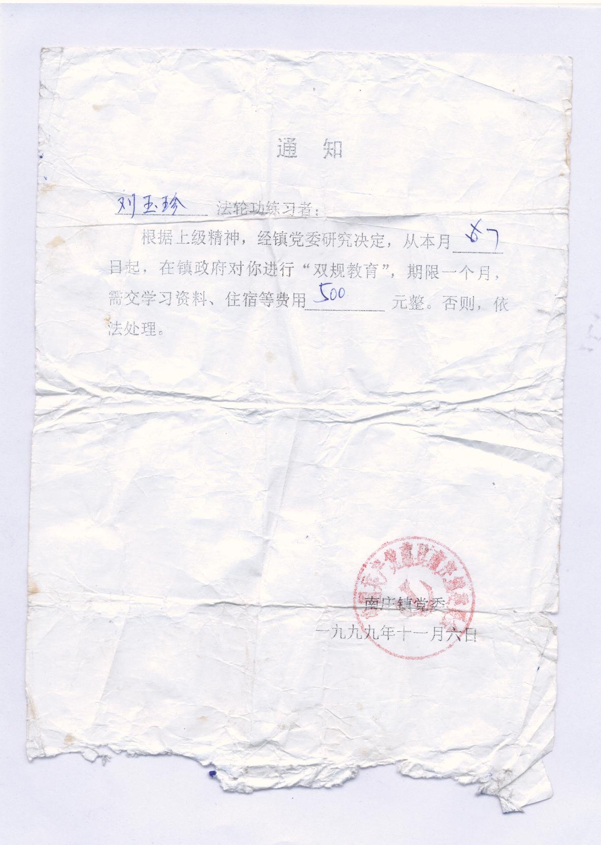 以下是南庄镇邪*党-官员对大法弟子罚款或其它迫害证据: