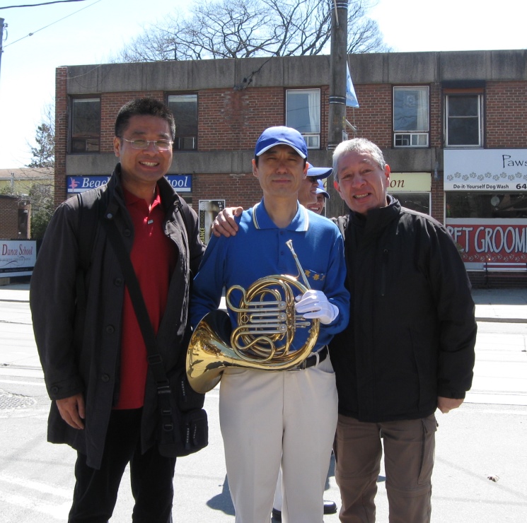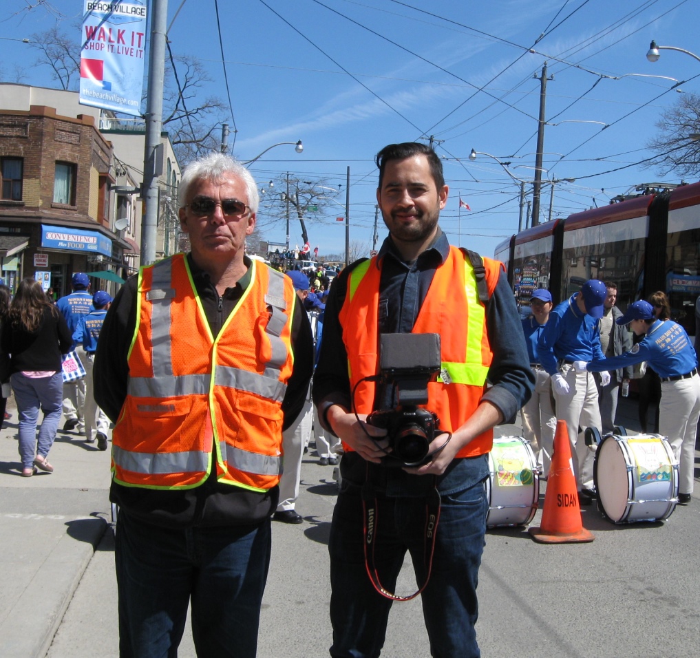 来自多伦多的纪录片导演Stephen Low 和他来自蒙特利尔的同事Girstan在给TTC(多伦多公车局)的新街车拍一个纪录片,看到天国乐团正好在街车的旁边做出发前的练习,他就做了很多天国乐团的录像。他想知道有关这个团体的情况,接过传单后,他说:“法轮功,我听说过,我会把我今天录下的都放在我的纪录片里。我会了解更多的情况,我希望跟这个团体的人合作,拍更多有关法轮功的纪录片。”