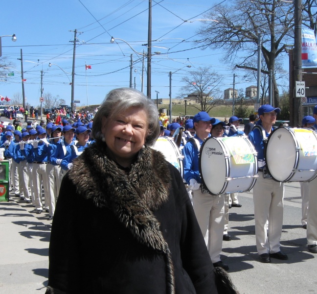 刚搬到Queen街的Anna兴奋地说:“没想到我们家是游行起点,天国乐团在这练习演奏了很长时间,我以前在很多地方都看过这个团体的演奏,但从来没象今天这样,我能观看这么长时间。真是一种享受,我都不愿他们离开。他们是这么的明亮,就象今天的天气,给人们带来春天的阳光,也象今天的庆祝,给世界带来希望。”