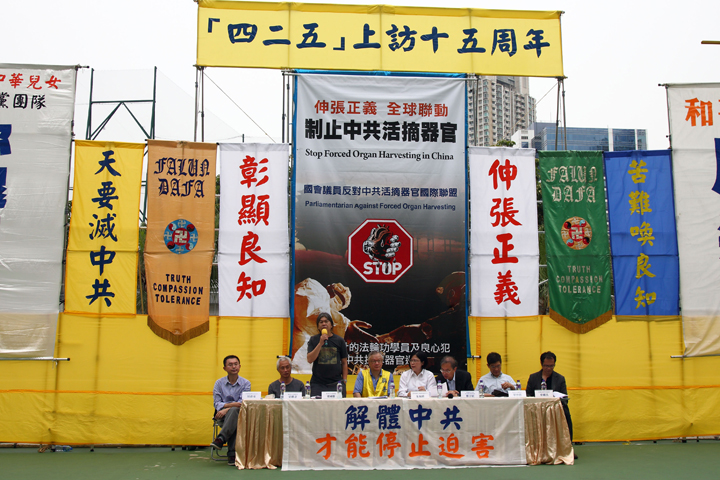 多位香港民主派议员及学者到场声援,此外还有多位包括台湾立法委员及大陆维权人士和正义之士,透过录音发言方式表达支持,并谴责中共活摘法轮功学员器官和所犯下的反人类罪行。