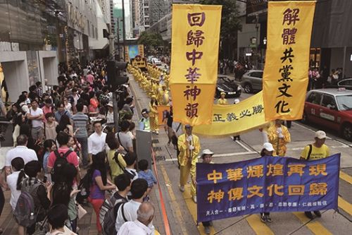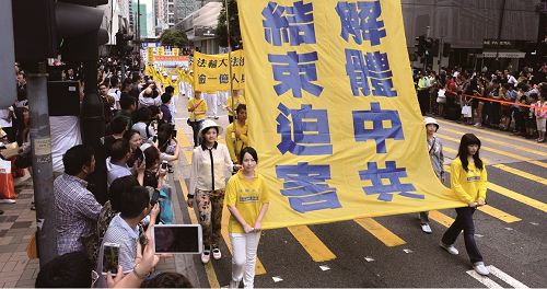 ![]() 图10-12. 遊行中揭露中共迫害真相,呼吁只有“解体中共 才能结束迫害”。 |