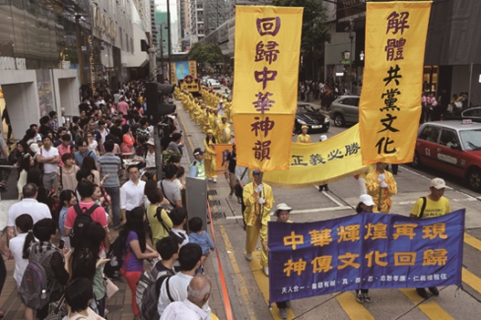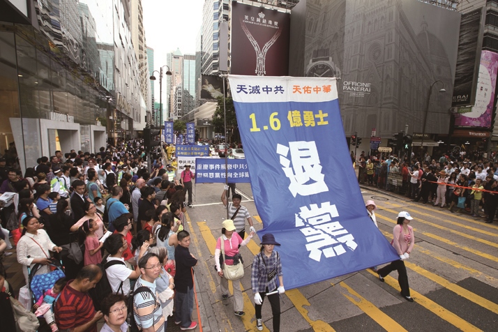 :退.(退出中共党、团、队等组织)。>图13-14. 遊行队伍的横幅真相触动人心,许多大陆遊客把握机会办理三:退.(退出中共党、团、队等组织)。 |
