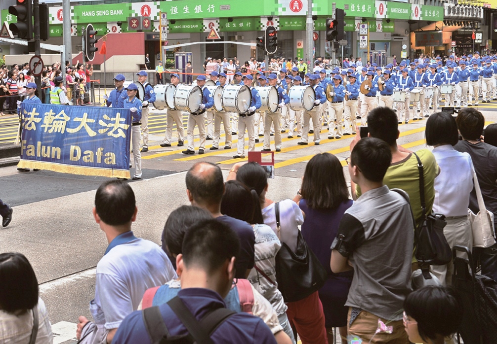反迫害集会结束后,下午二时,浩浩荡荡的遊行队伍在天国乐团的领头下,从长沙湾遊乐场出发,途径九龙闹市中心,沿着九龙区市中心,历经三小时的遊行,最后抵达尖沙咀天星码头。