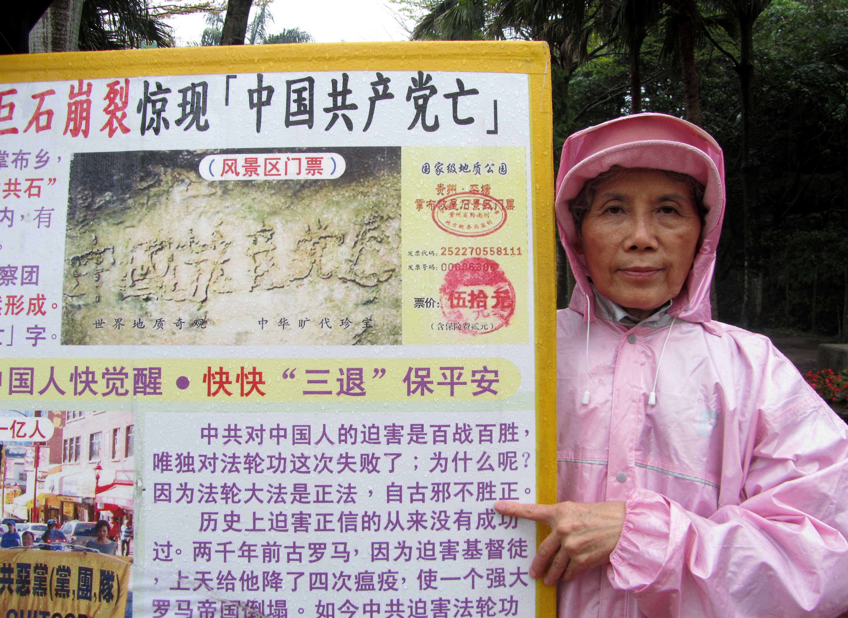 ![]() 图3. 七十二岁的吕淑,每天到景点讲真相,风雨无阻,为只为帮助可贵的中国人认清共产党的邪恶本质。 |