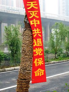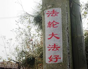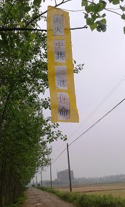 四•二五上访十五周年之际,在大陆多地出现法轮功真相条幅和标语,告诉人们“法轮大法好”、“世界需要真善忍”。