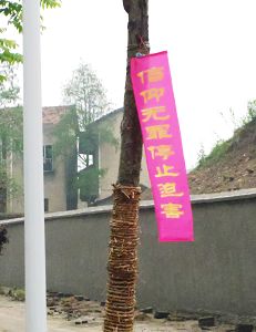 “四•二五”期间湖北省公安县某地出现法轮大法真相条幅和挂牌