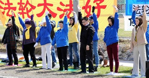 ![]() 四月二十五日渥太华法轮功学员在中使馆前集会,纪念四•二五和平上访十五周年。 |
