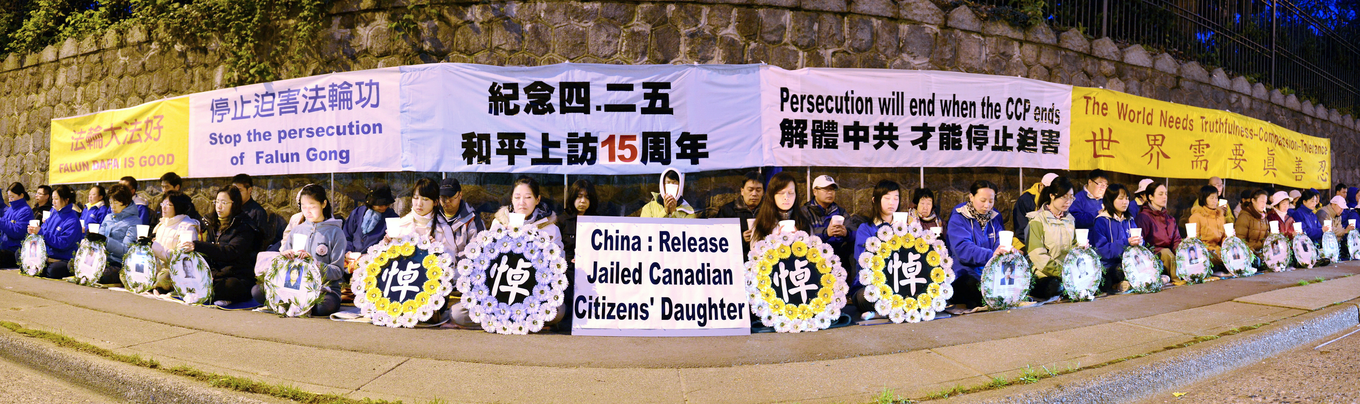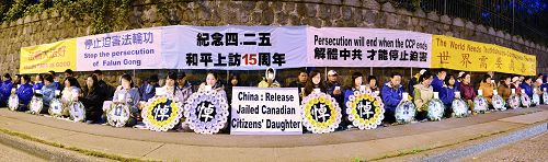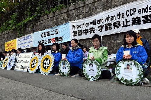 ![]() 四月二十五日渥太华法轮功学员在中使馆前集会,纪念四•二五和平上访十五周年。 |