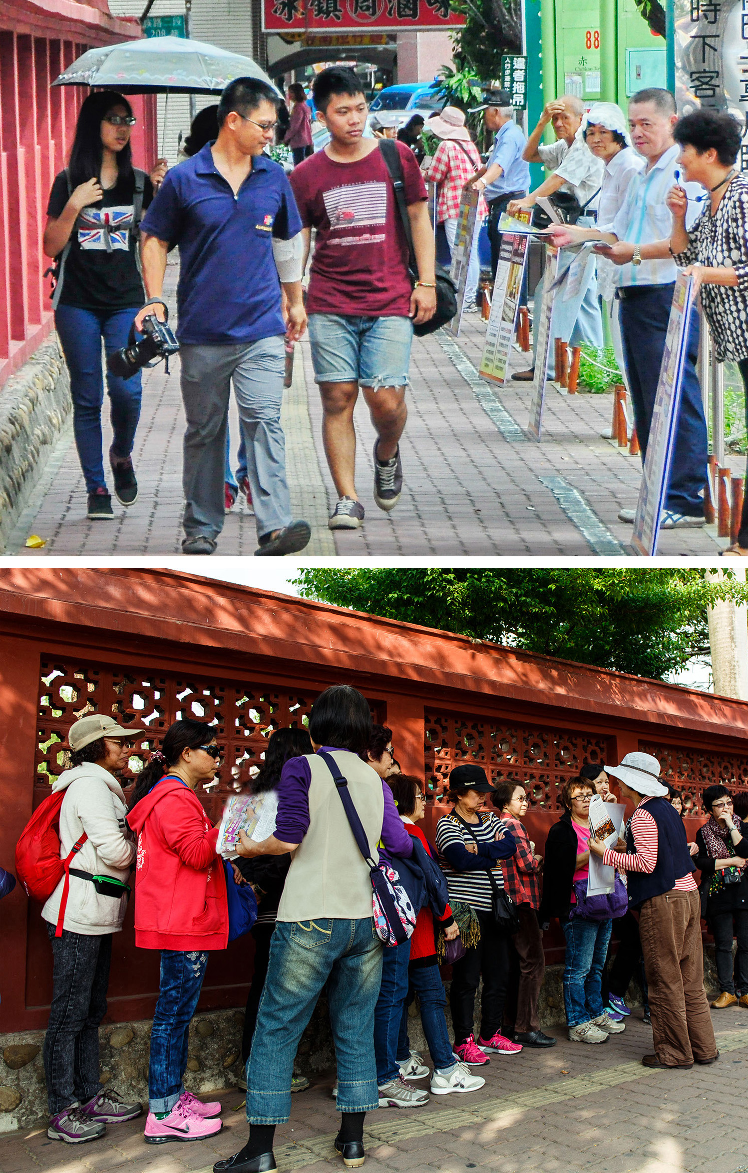 在赤崁楼一大片赭红色的墙壁前,近十一年来,法轮大法学员风雨无阻、全年无休在这里展示法轮功弘传世界以及中共邪恶迫害法轮功学员的真相看板,并跟游客们讲真相、劝三:退.(退出中共邪*党-及其团队组织),为大陆游客了解法轮功打开一扇真相窗口。