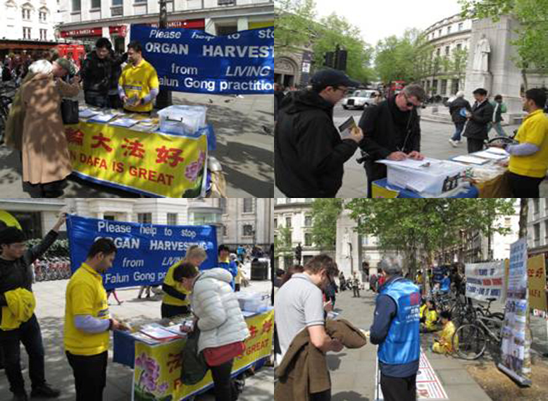 ![]() 纪念“四•二五”,英国法轮功学员在伦敦市中心开展和平理性讲真相、反迫害活动。 |