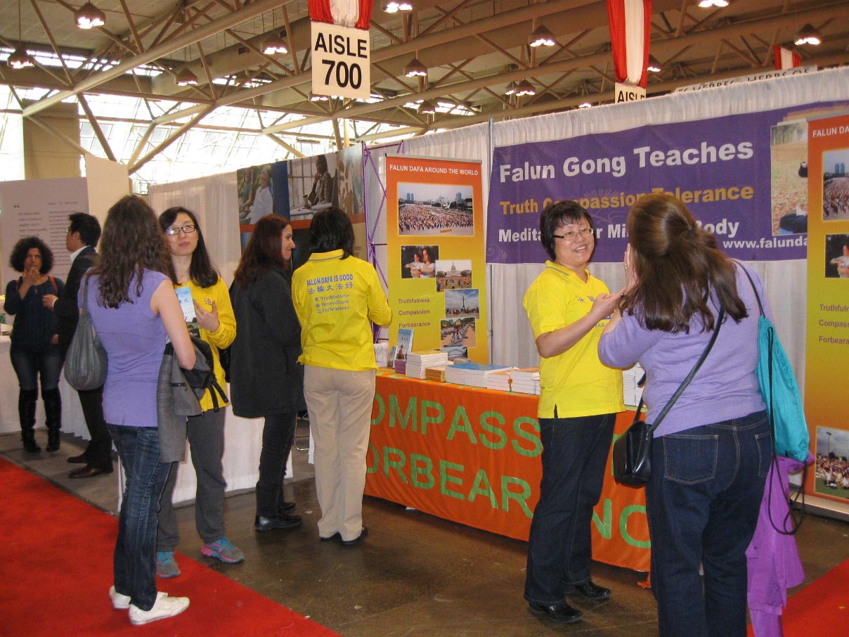 ![]() 多伦多法轮功学员参加北美第三十七届健康展,给民众介绍功法 |