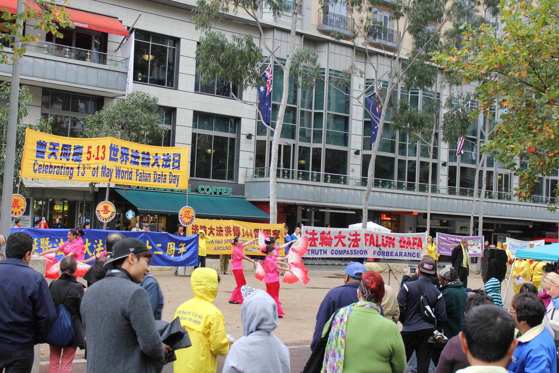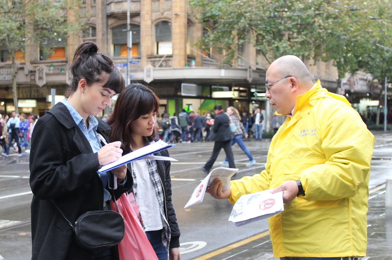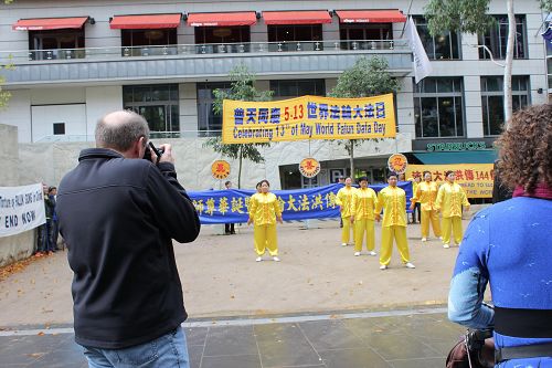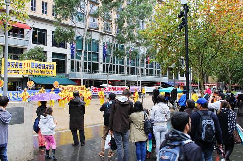 墨尔本法轮功学员在市中心城市广场举行活动,庆祝第十五届世界法轮大法日 |
