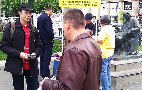 ![]() 法轮功学员在罗马尼亚布加勒斯特市中心讲真相 |