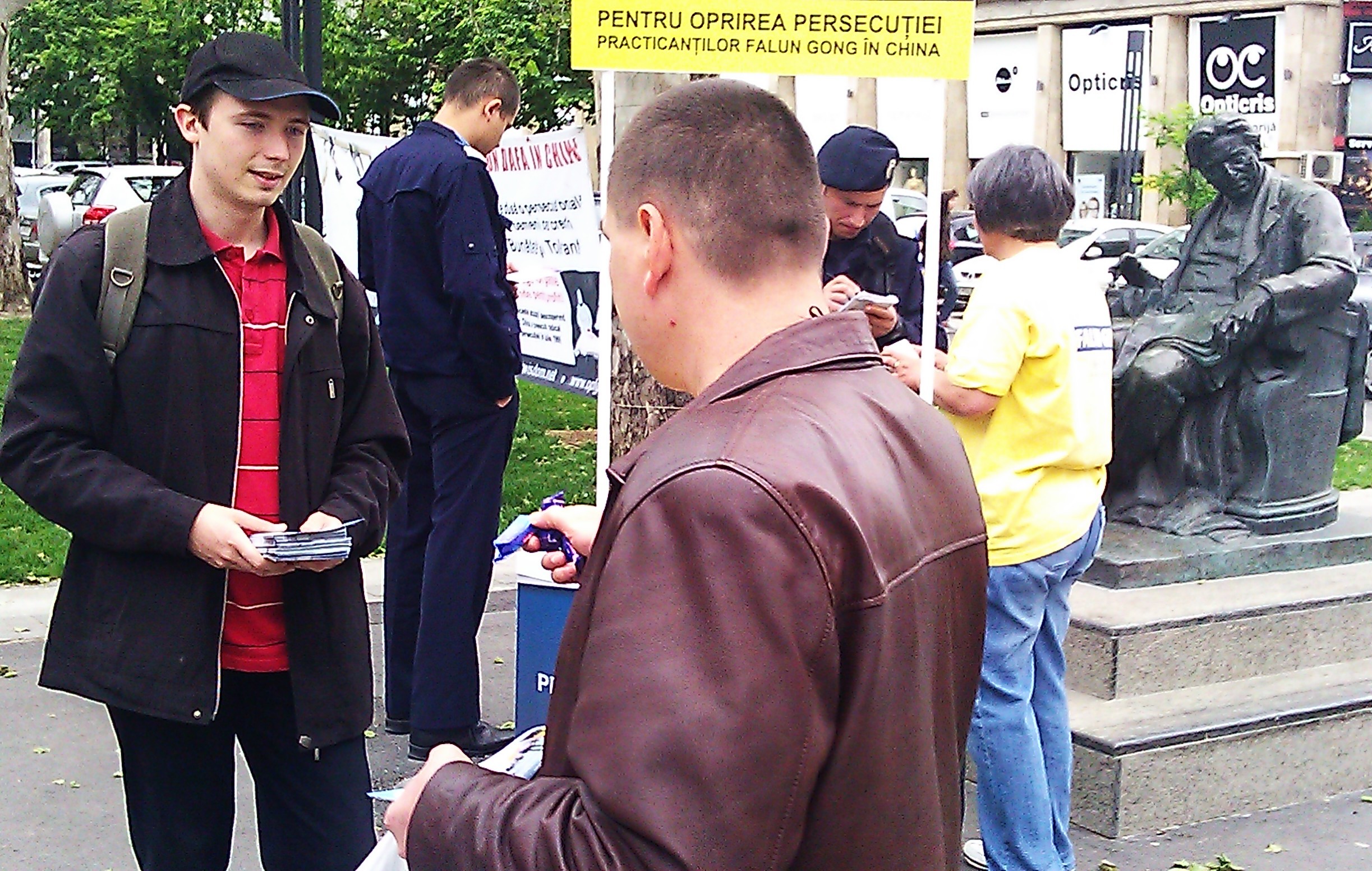 学员们给罗马尼亚民众介绍以“真、善、忍”为修炼原则的法轮大法的特点,并讲述中国共产党对这群善良的修炼人进行的非法残酷迫害。活动中,学员们展示了功法,并向人们发放真相资料。
