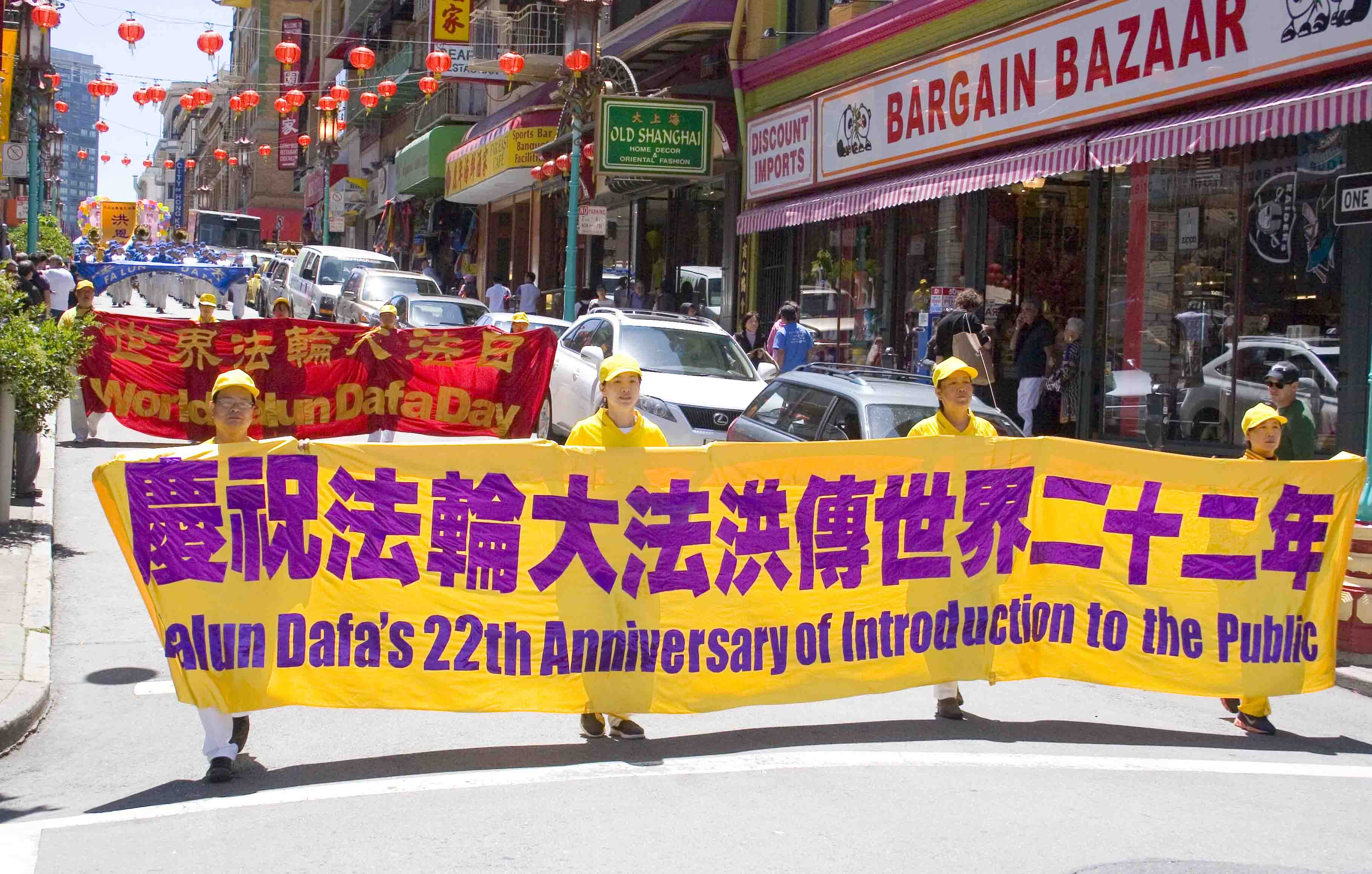 ![]() 游行队伍经过中国城主要街道 |