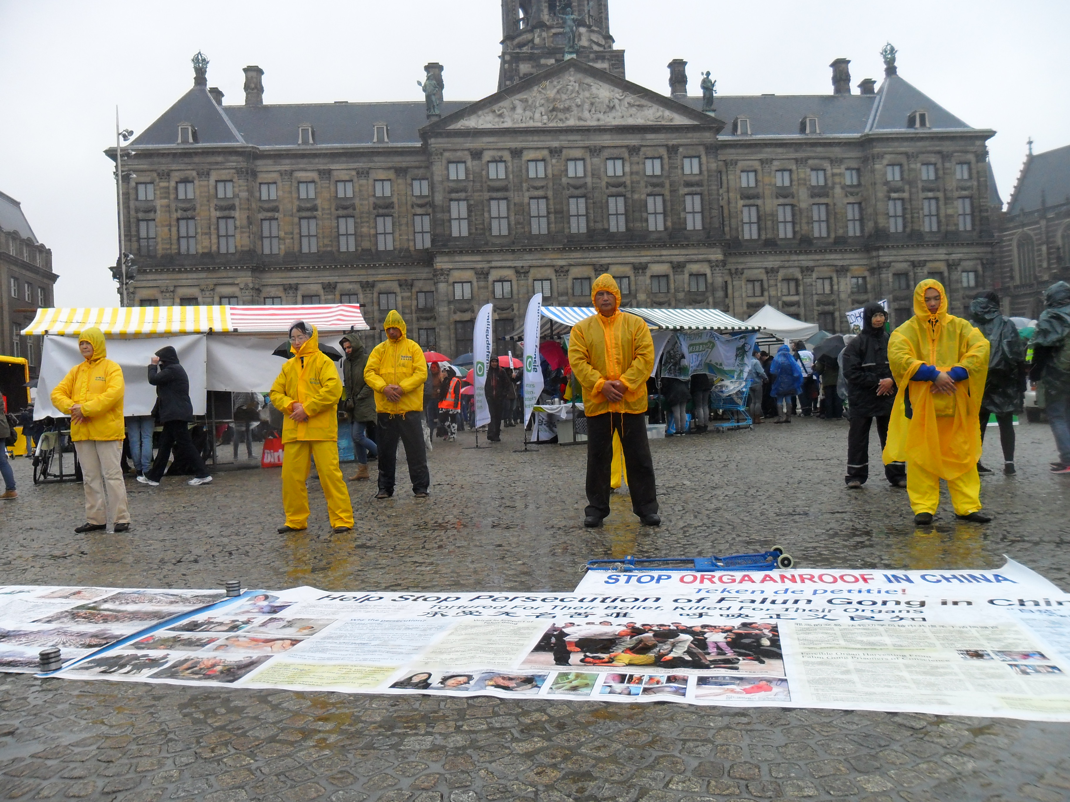 法轮功学员在阿姆斯特丹的皇宫门前达姆广场举行讲真相活动