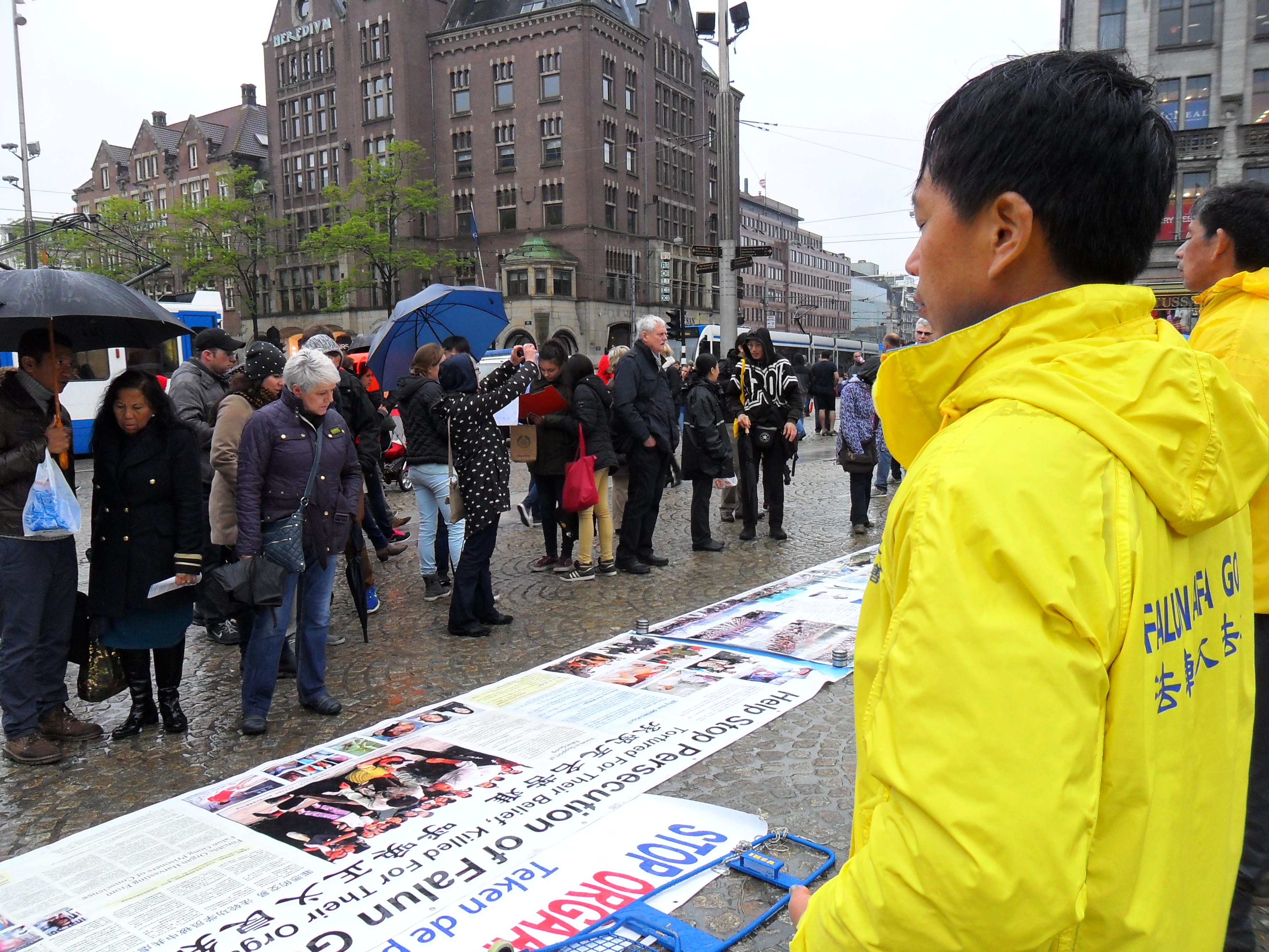 【明慧网二零一四年五月十二日】为庆祝第十五届“世界法轮大法日”,让更多人了解法轮功以及发生在中国的迫害事实,二零一四年五月十日,法轮功学员在荷兰首都阿姆斯特丹的皇宫门前达姆广场举行讲真相活动。