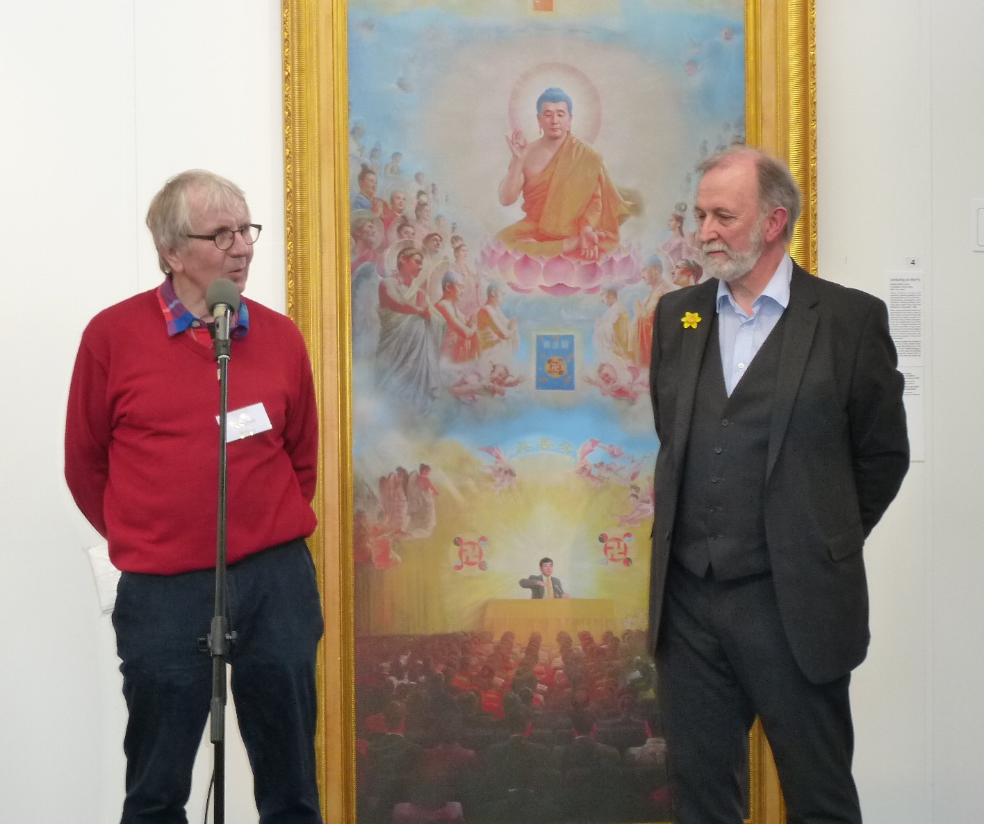 ![]() “真善忍”国际美展英国分部负责人Eddie Aitken向来宾介绍 |