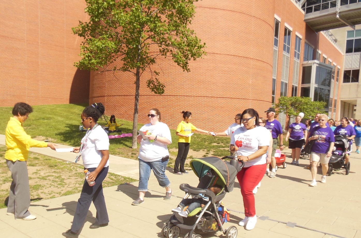 一位刚从国内来探亲的老人,接过学员的材料后,微笑致谢。他说:“法轮功的真相我在国内就知道。共产党说的都是假的。中共强摘法轮功学员器官,太邪恶了。我们一家早就三:退.(退出中共党、团、队,简称‘三:退.’)了。”
