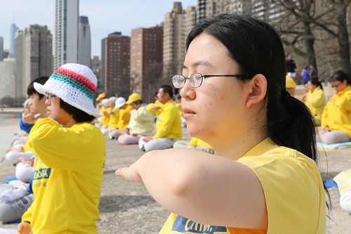 经过最冷酷的冰雪严冬,芝加哥终于迎来春暖花开的日子。十日清晨,在密西根湖畔跑步、骑单车的人们,被一群在湖边静静打坐的人吸引,好奇地上前打探,原来这就是“法轮功”。一九九九年以来,尽管中共开动所有的宣传机器,极力丑化、妖魔化法轮功,但海外的法轮功学员以不间断地,以大型集体炼功等的平和的方式,向人们展示法轮大法的美好,使谣言不攻自破。