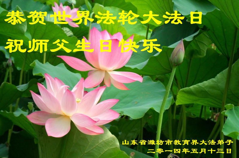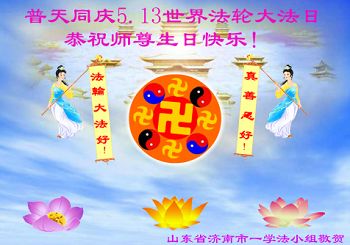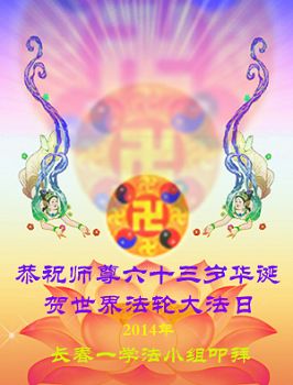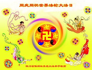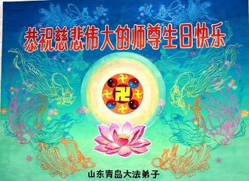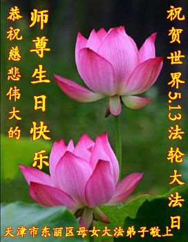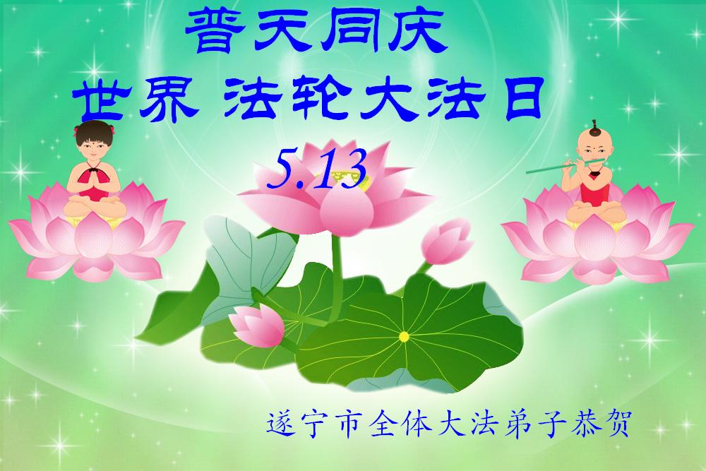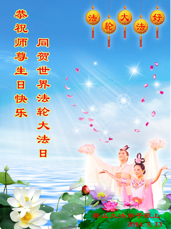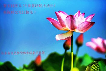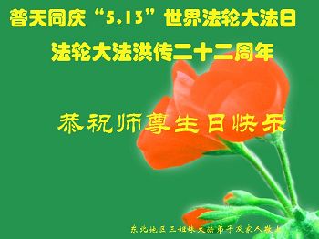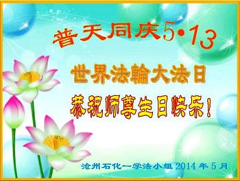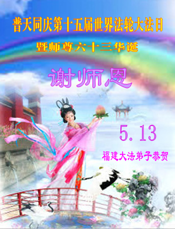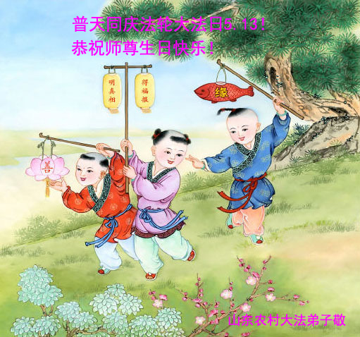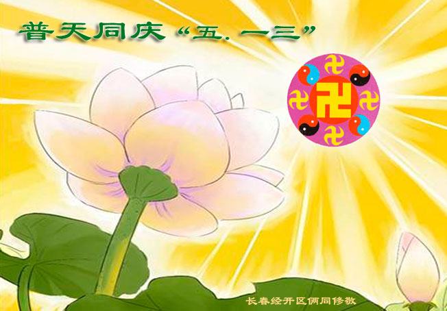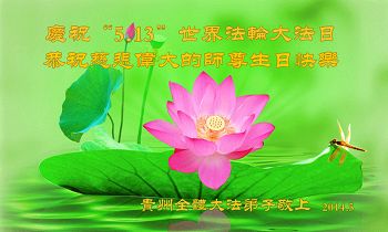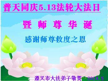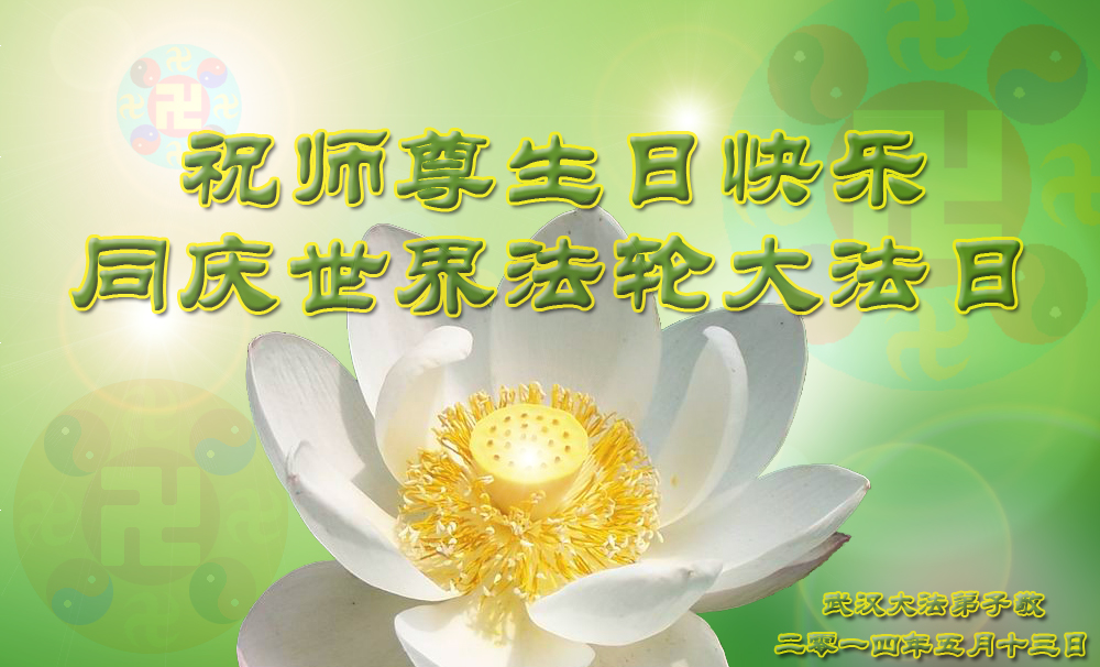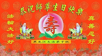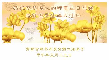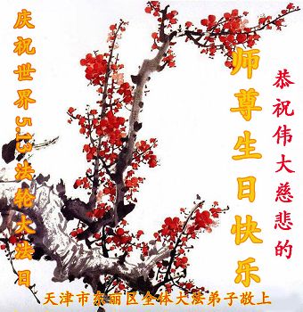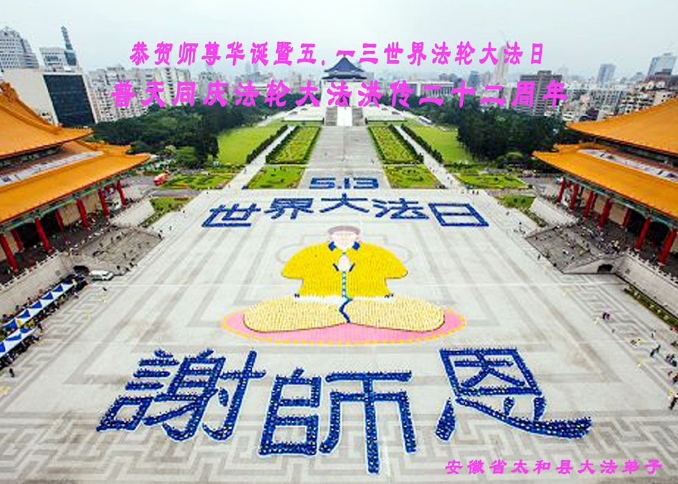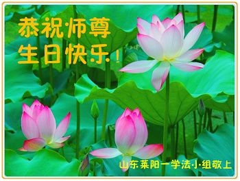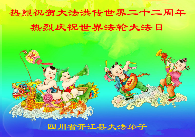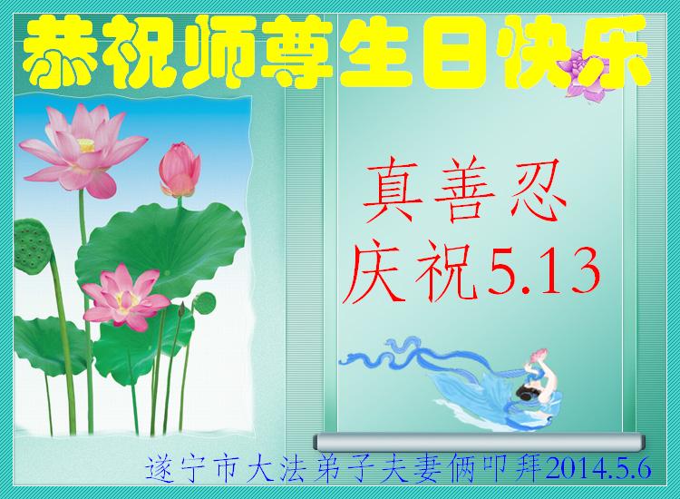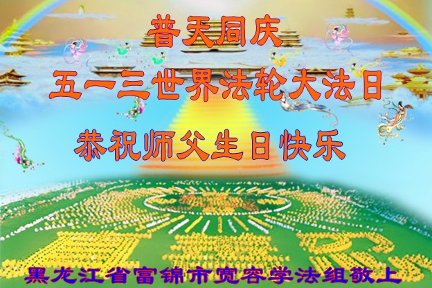 一年过去了,又迎来了新的一年,天上地上普天同庆“五一三”全世界法轮大法日的今天,我们眉山市、县、镇、乡、村全体大法弟子,向慈悲伟大的师父问候,师父您好,师父生日快乐!法轮大法好!真、善、忍好!