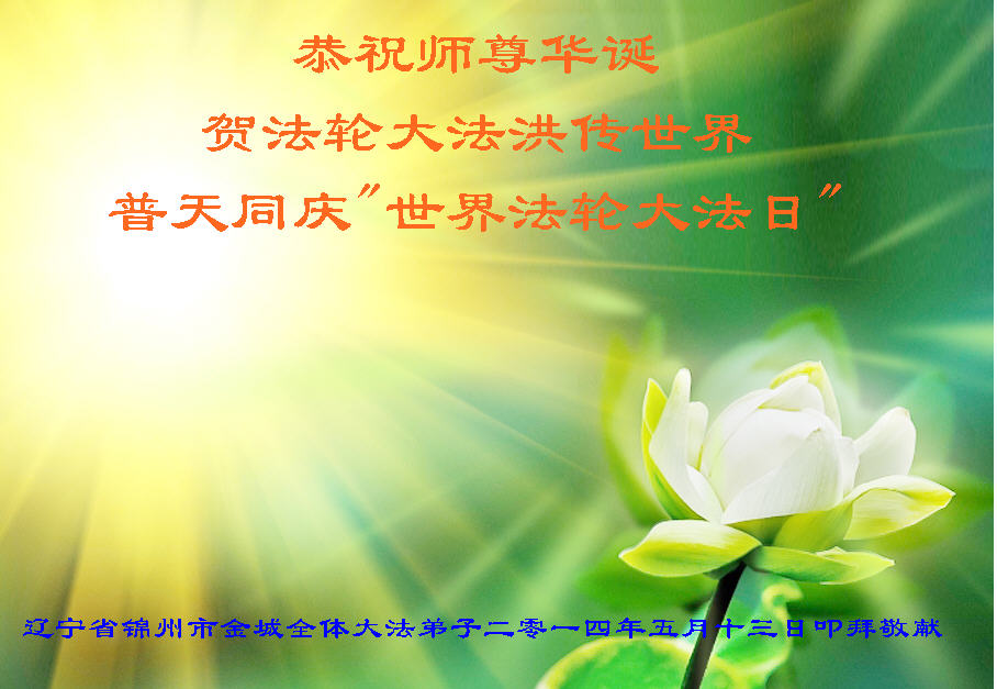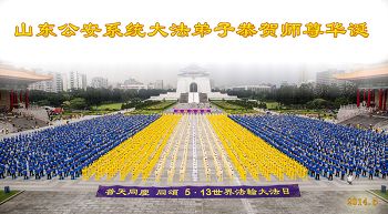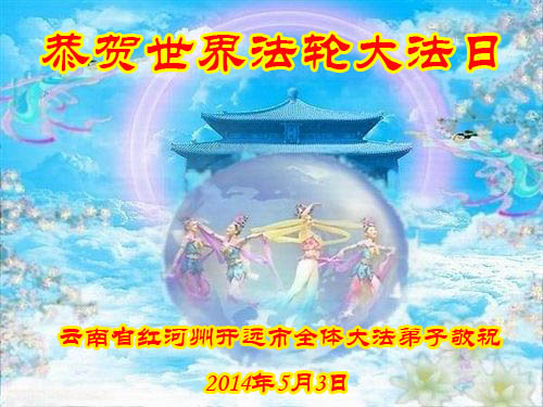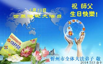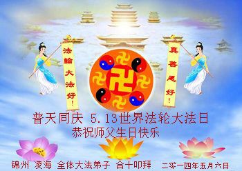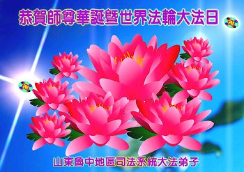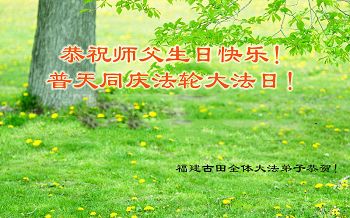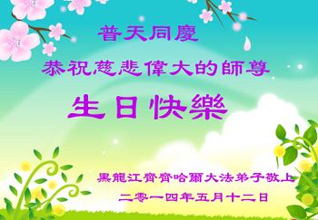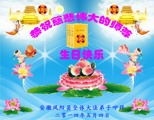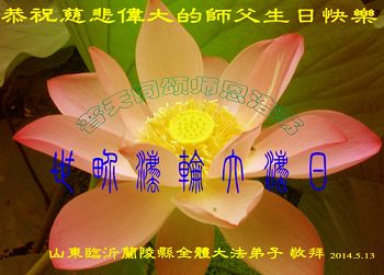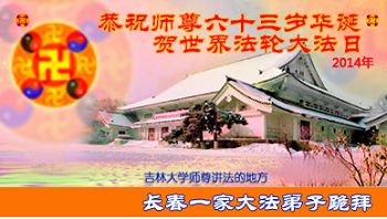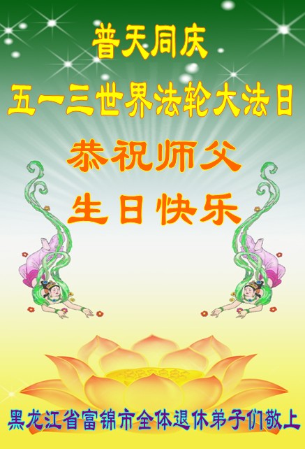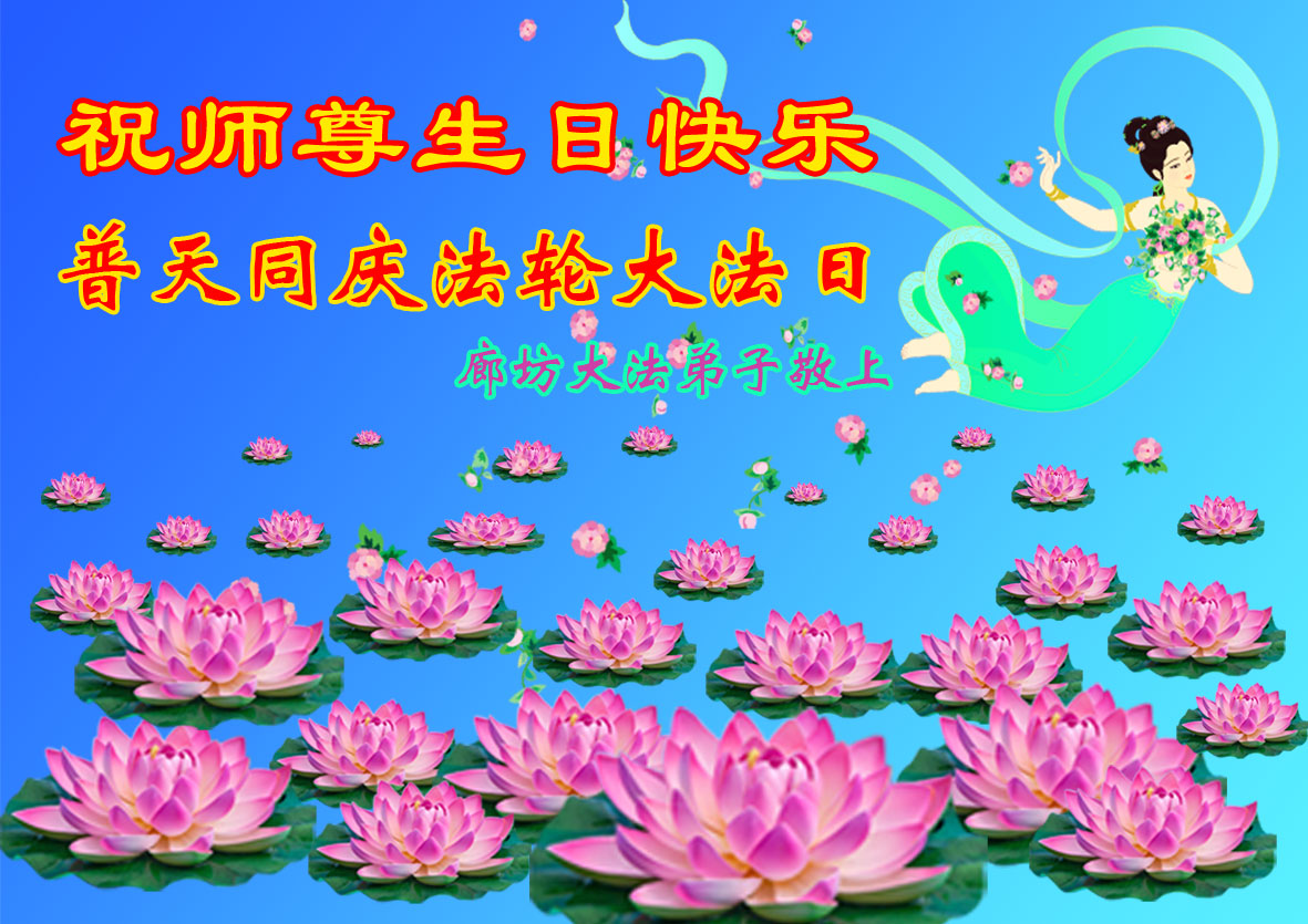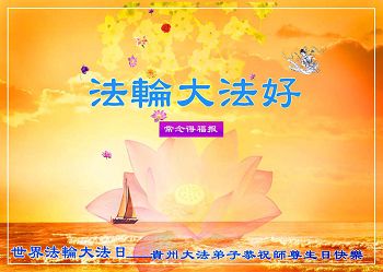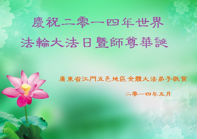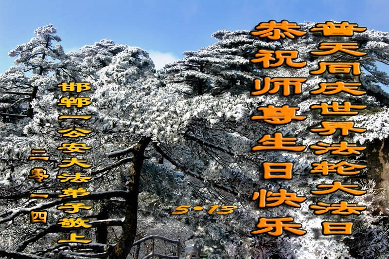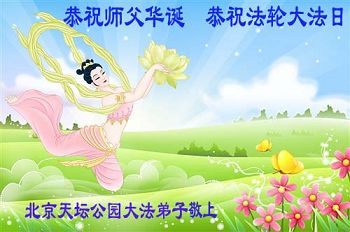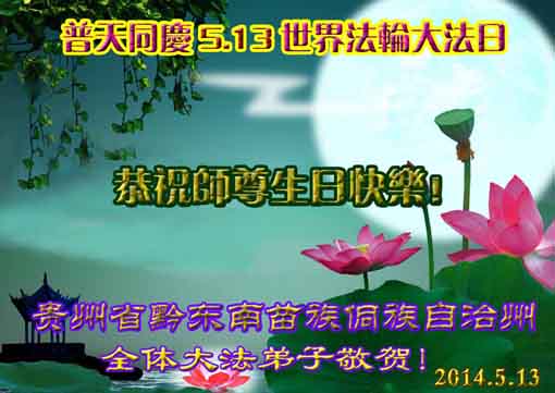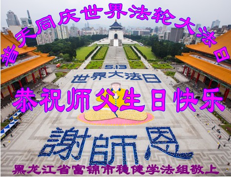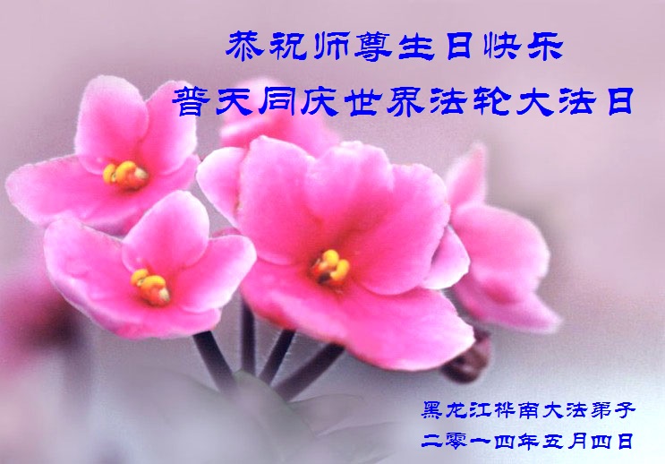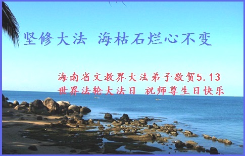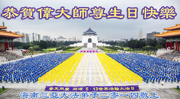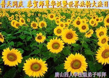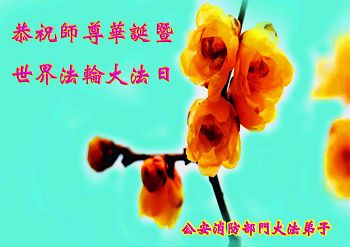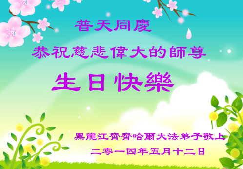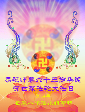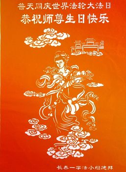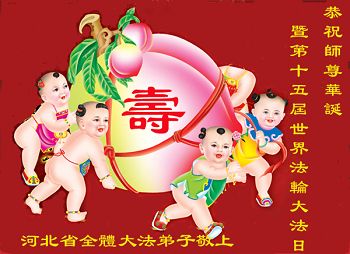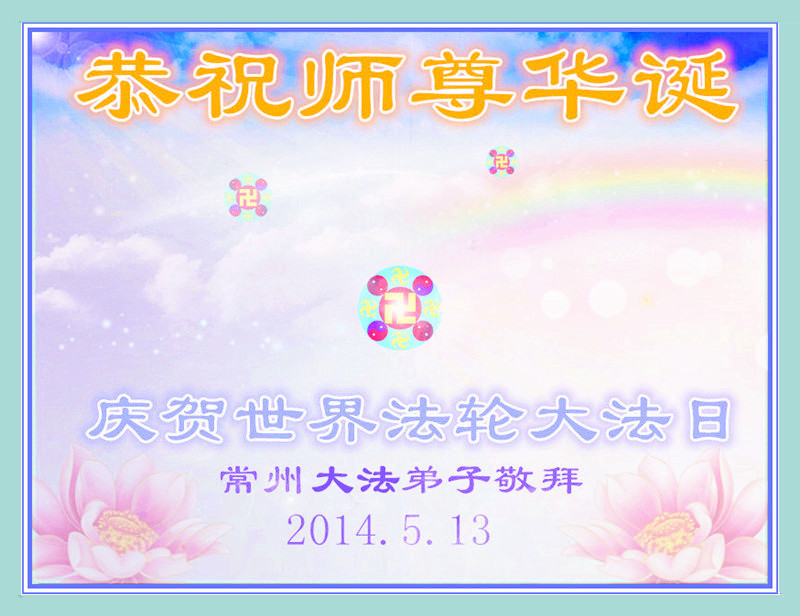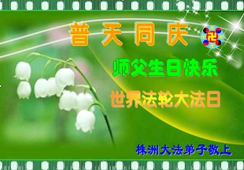 一年过去了,又迎来了新的一年,天上地上普天同庆“五一三”全世界法轮大法日的今天,我们眉山市、县、镇、乡、村全体大法弟子,向慈悲伟大的师父问候,师父您好,师父生日快乐!法轮大法好!真、善、忍好!
