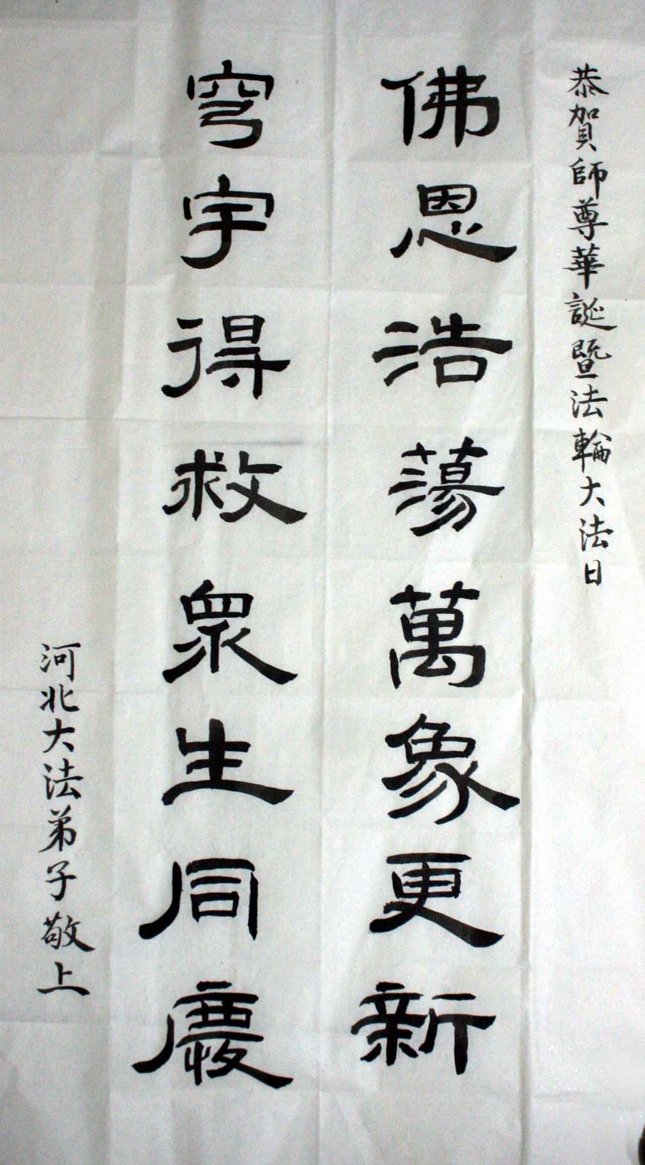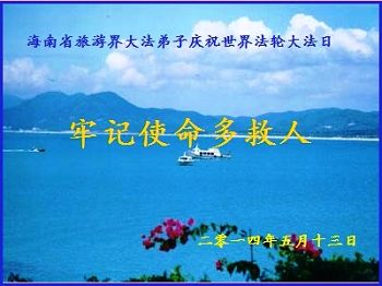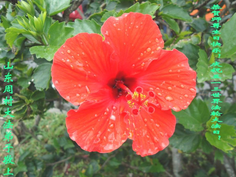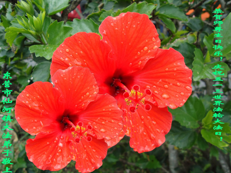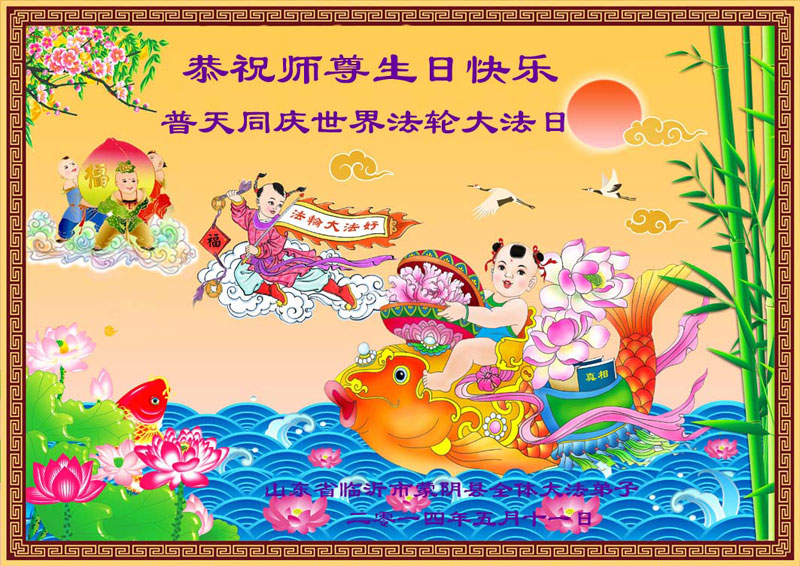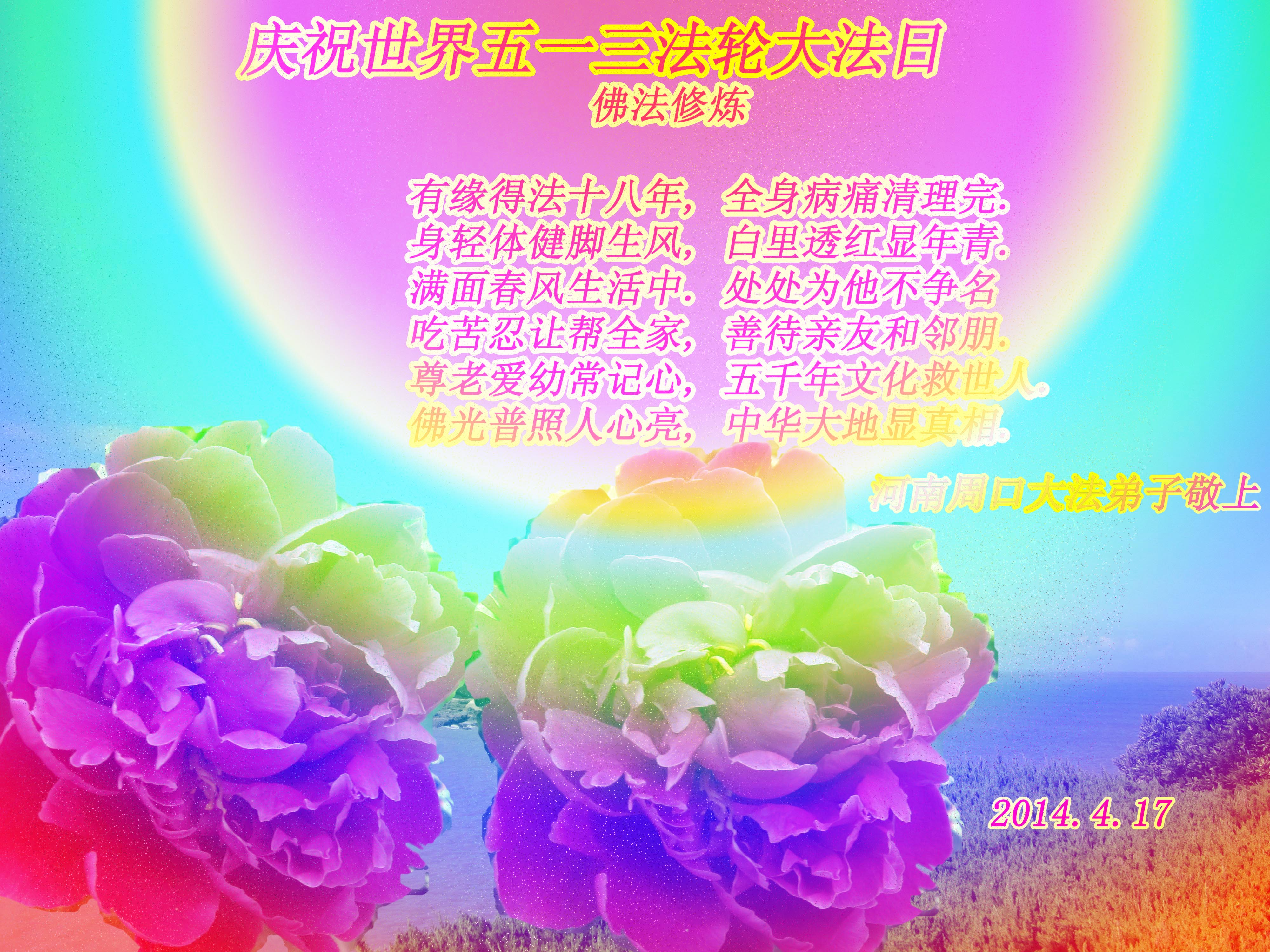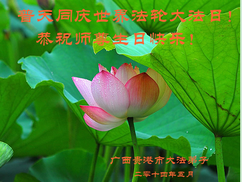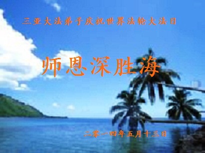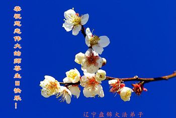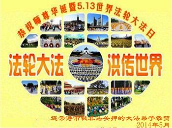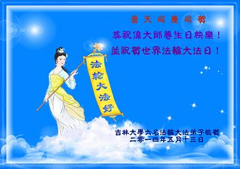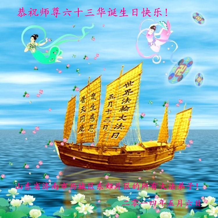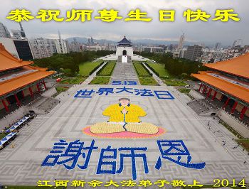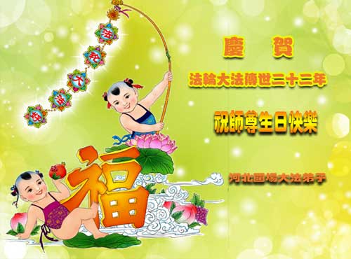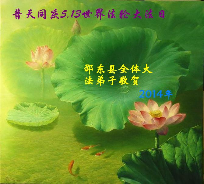 一年过去了,又迎来了新的一年,天上地上普天同庆“五一三”全世界法轮大法日的今天,我们眉山市、县、镇、乡、村全体大法弟子,向慈悲伟大的师父问候,师父您好,师父生日快乐!法轮大法好!真、善、忍好!