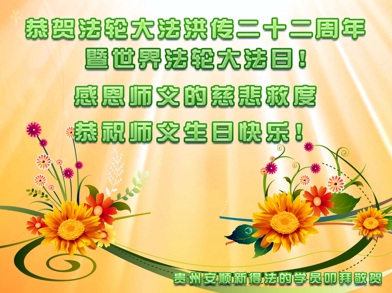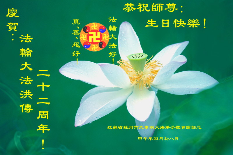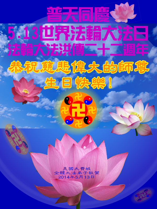 祝贺法轮大法洪传世界二十二周年!祝贺世界法轮大法日!