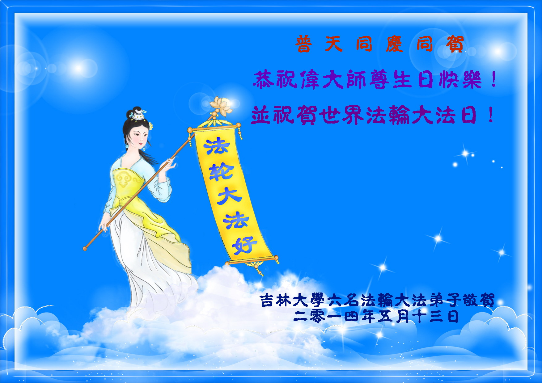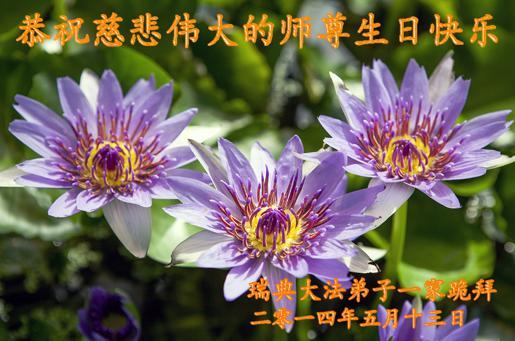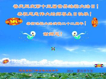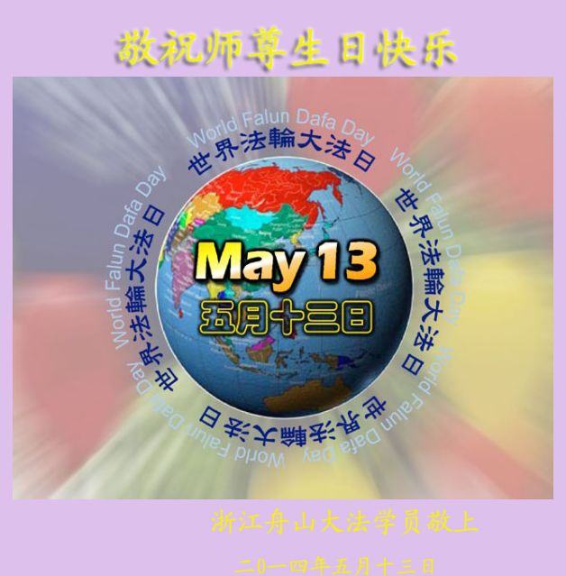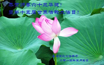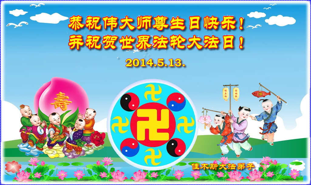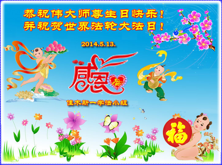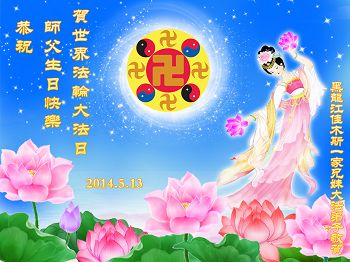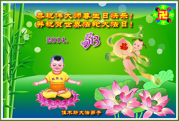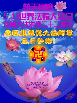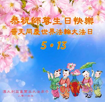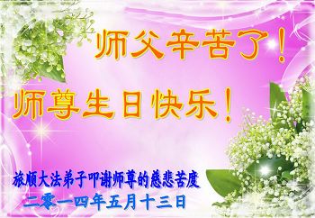 <英文版: http://en.d2s3ombhnov3zf.cloudfront.net/html/articles/2014/5/14/1126.html>加拿大、美国、澳洲大法弟子恭贺世界法轮大法日暨师尊华诞