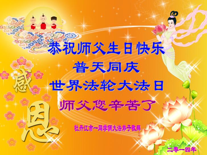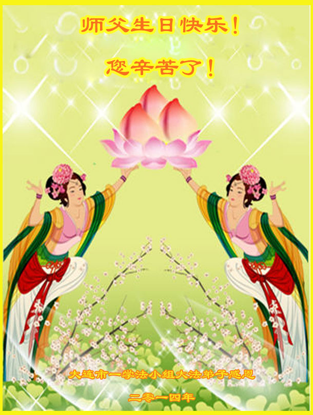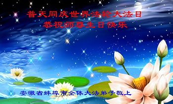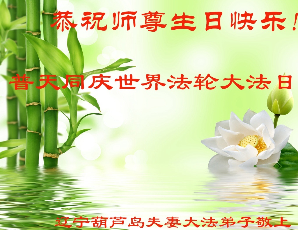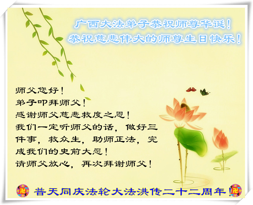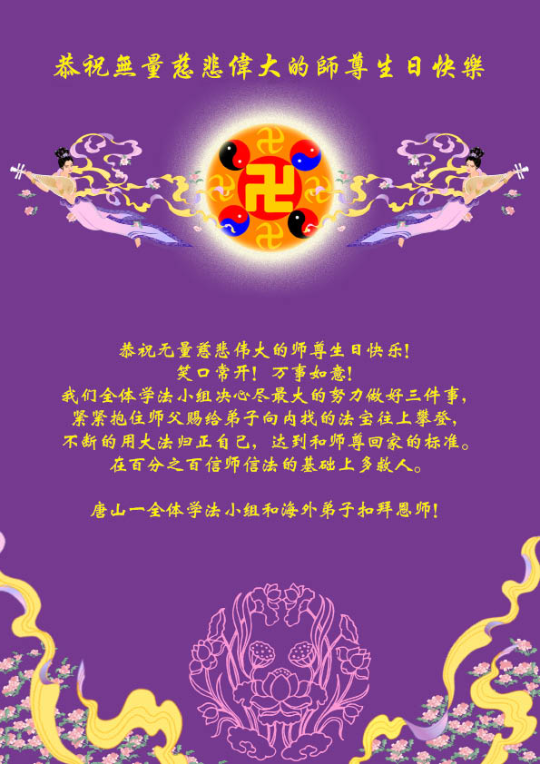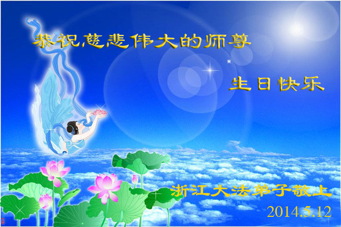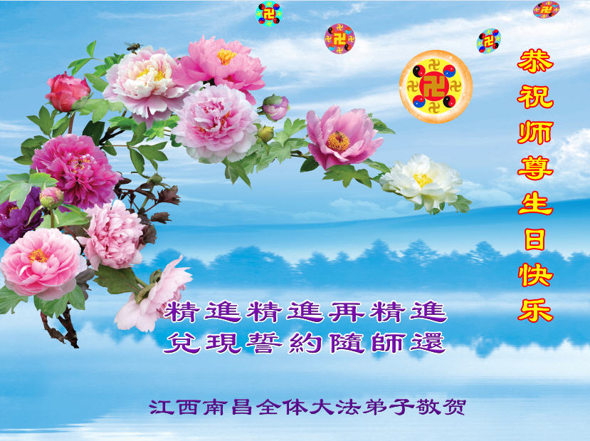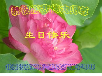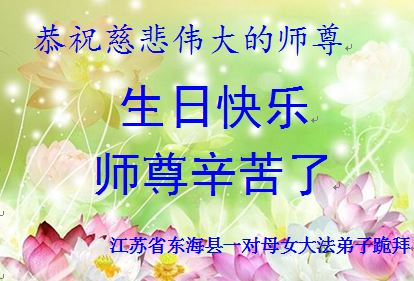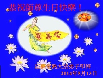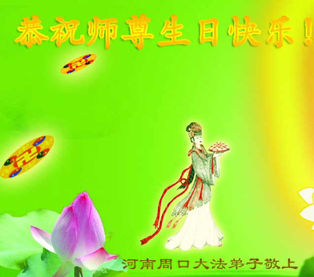 在这普天同庆的大好日子里,四川省中江县全体大法弟子跪拜师尊,祝师尊生日快乐!请师尊放心,我们一定正念正行,走好师尊安排的正法修炼之路,救度更多的众生,兑现自己的史前誓约!