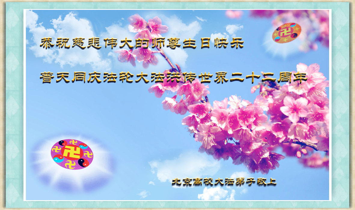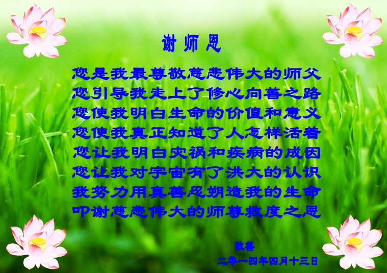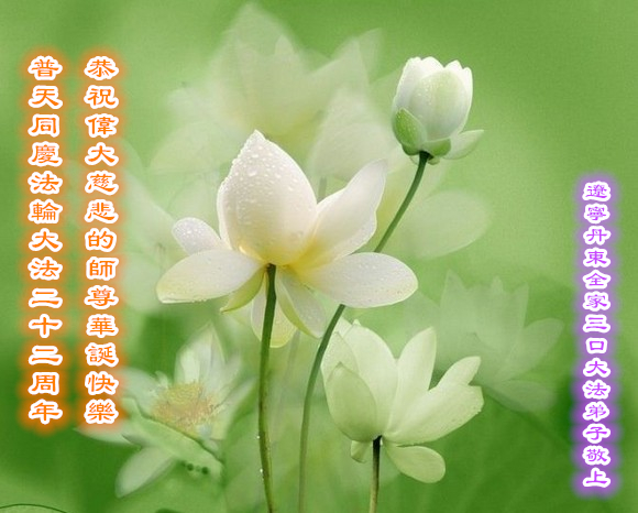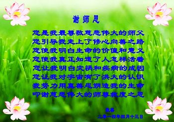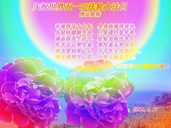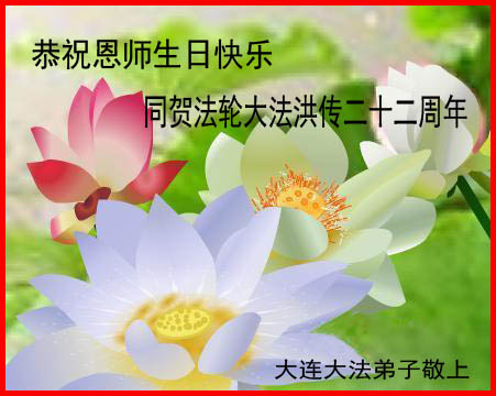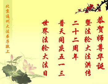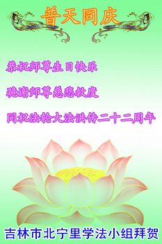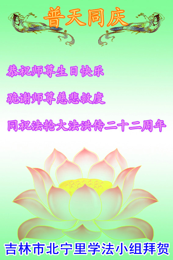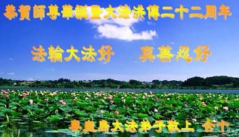 在22年的风风雨雨里,李大师同弟子为世间正法和传法付出了常人无法想象的慈悲,使世人觉醒,生命得到了救赎!我们从大法弟子身上看到大法的美好,触动着每一个人的心灵,我发自内心感谢大法!法轮大法好!真善忍好!