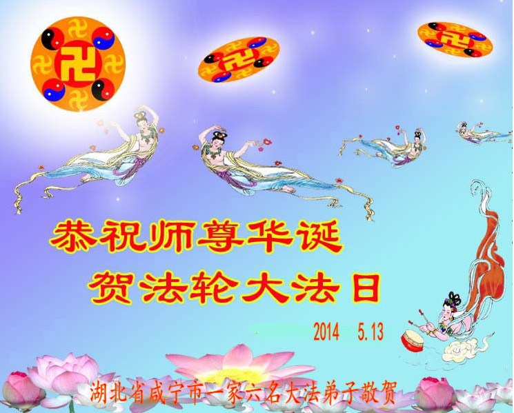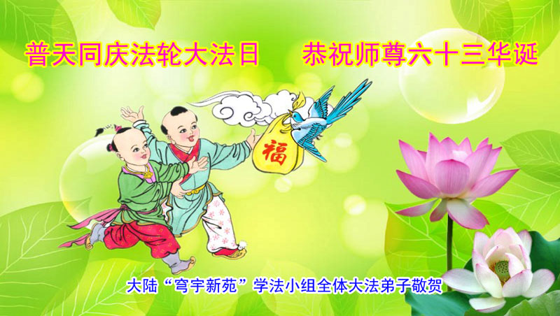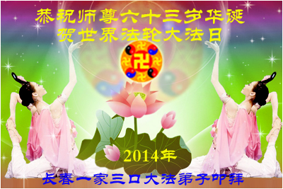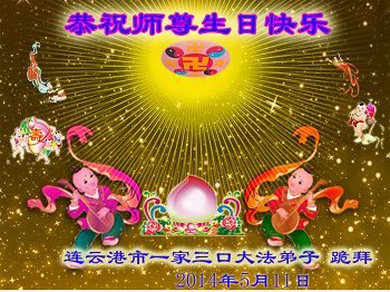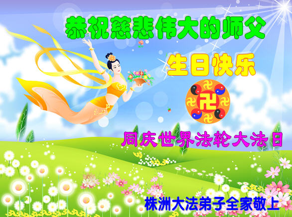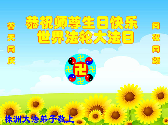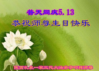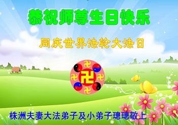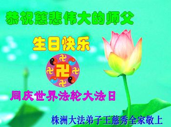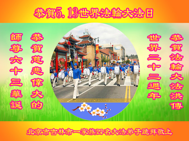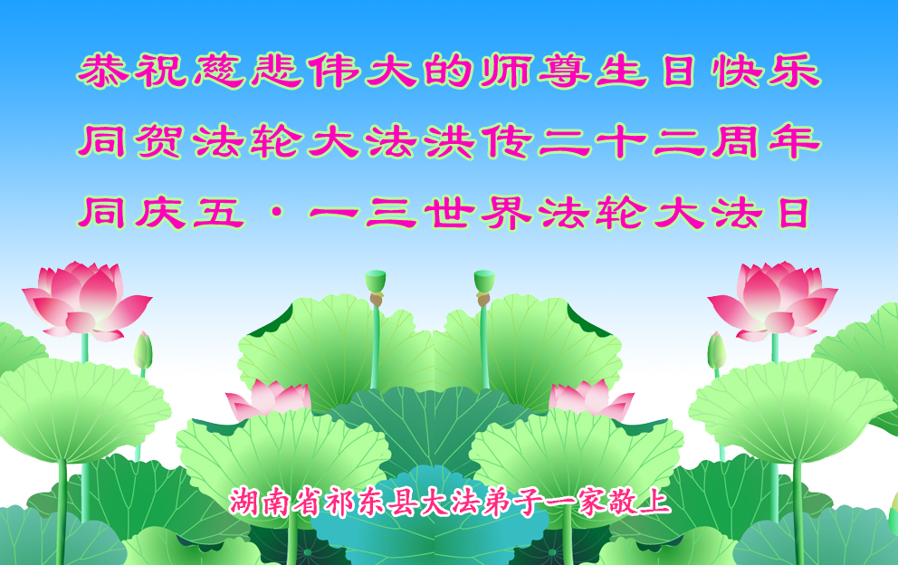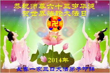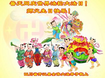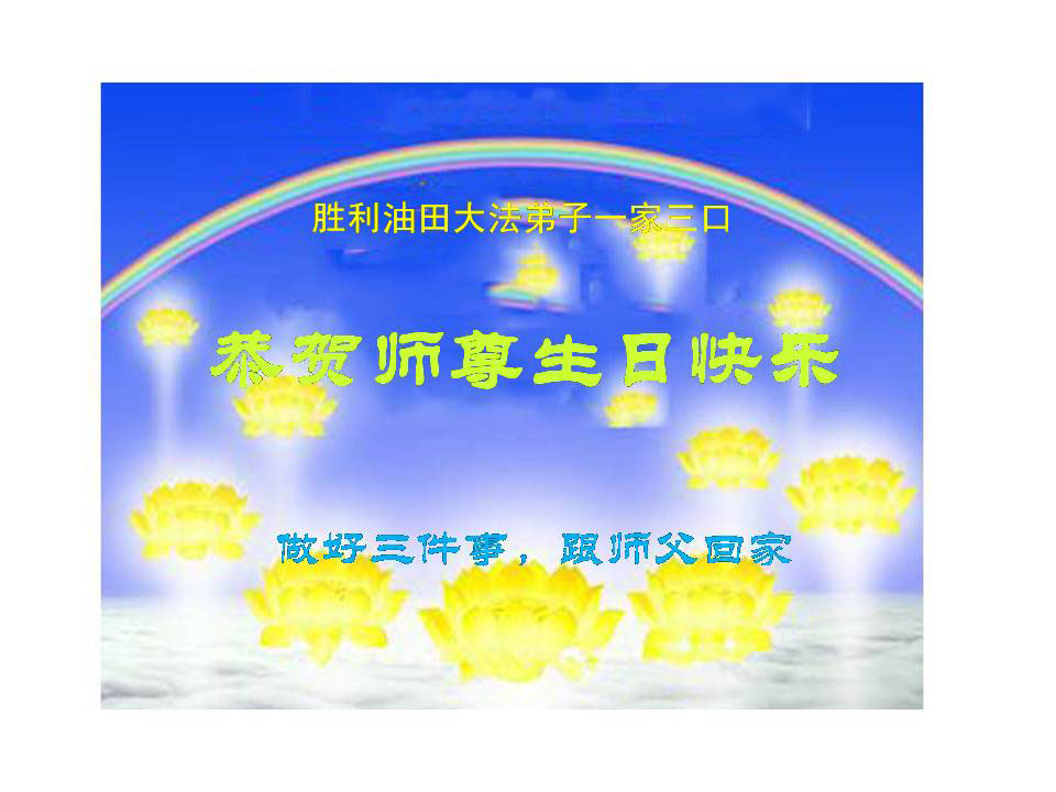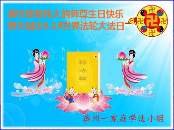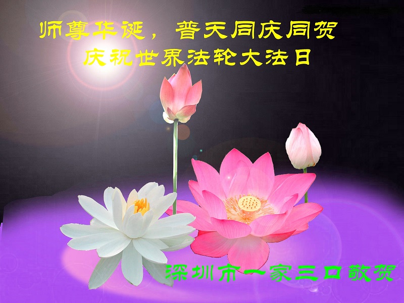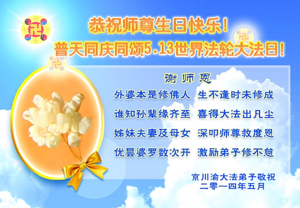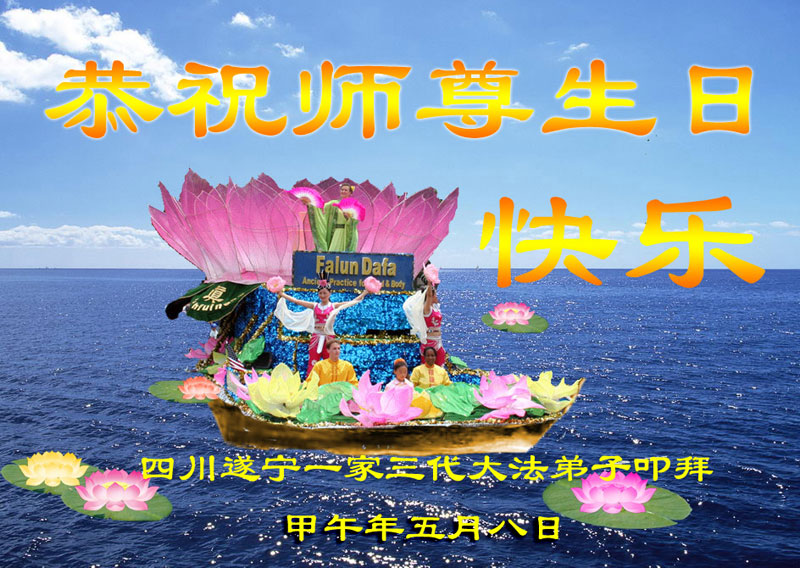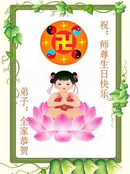 资阳一大法弟子全家恭贺世界法轮大法日,恭祝慈悲伟大的师父生日快乐!