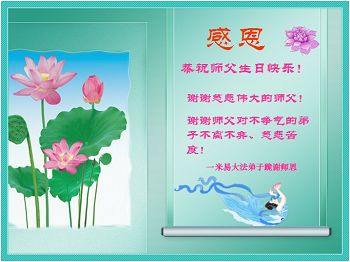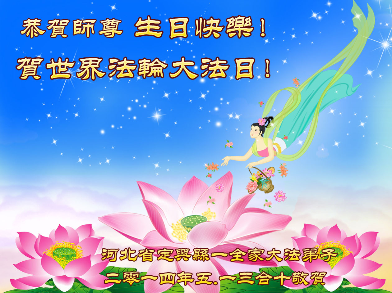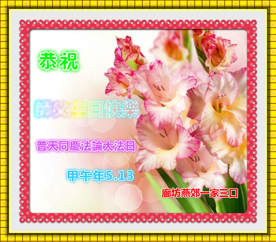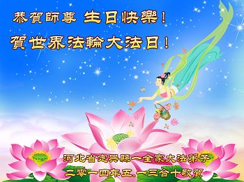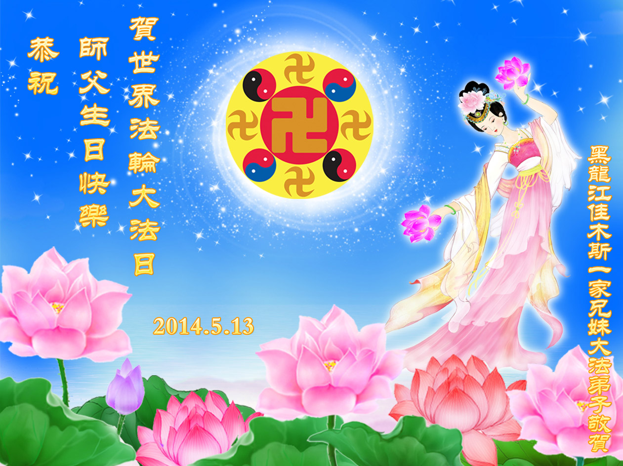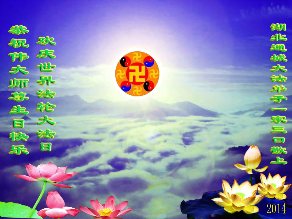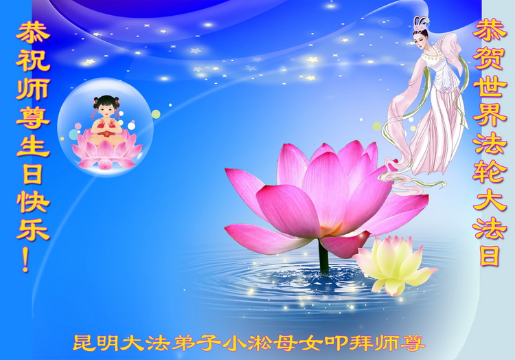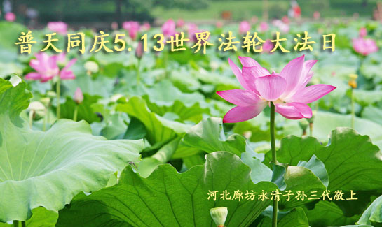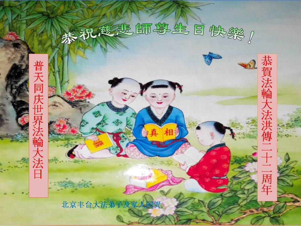 资阳一大法弟子全家恭贺世界法轮大法日,恭祝慈悲伟大的师父生日快乐!