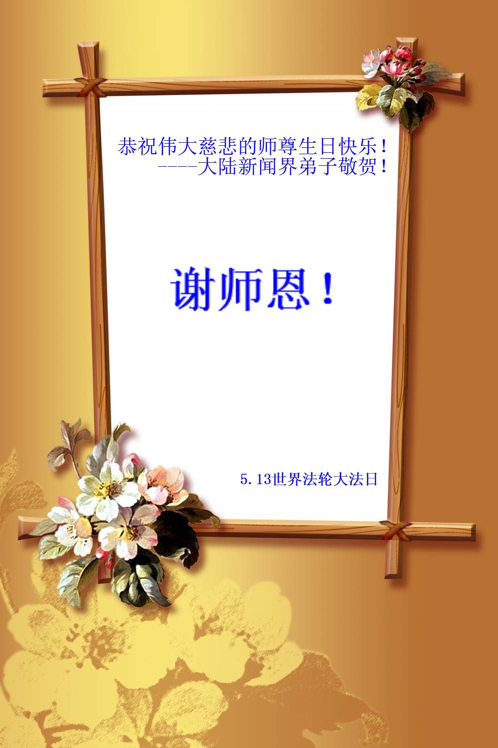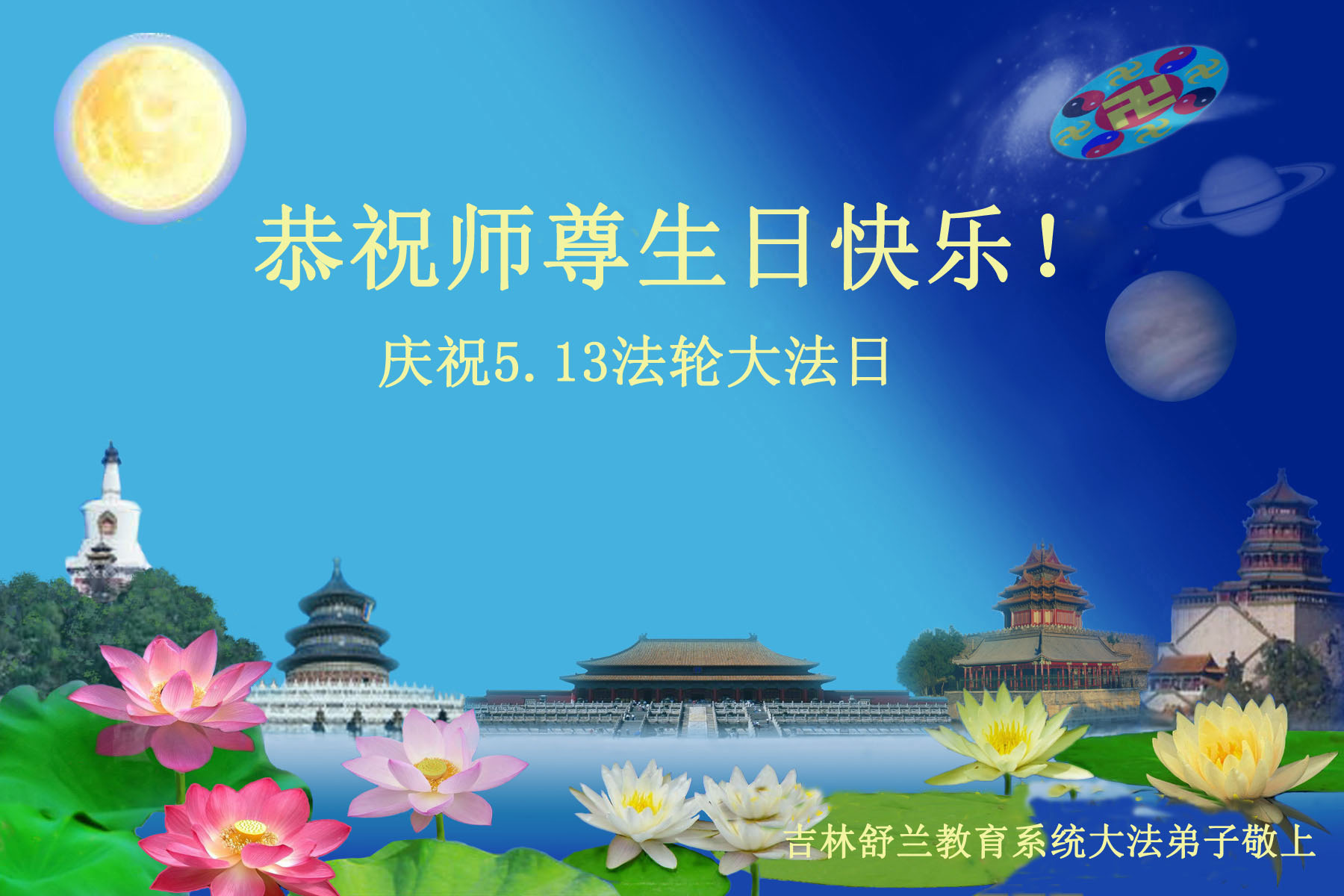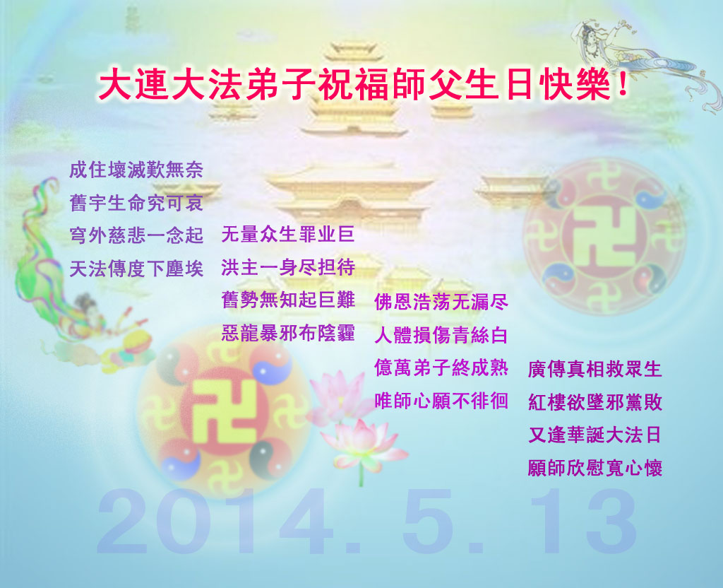 祝法轮功创始人生日华诞!祝师父心想事成!