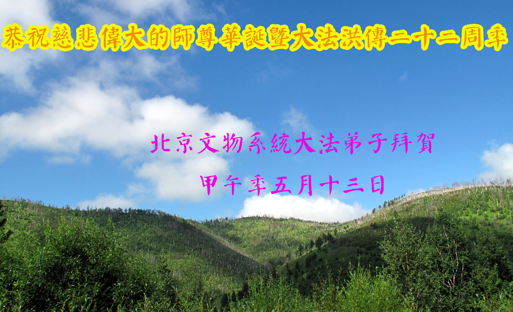 贺慈悲伟大的师尊传法二十二周年!普天同庆第十五届“世界法轮大法日”!