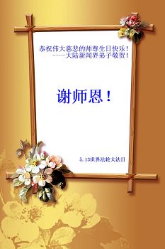 恭祝师尊生日快乐!身体健康!我要做一个符合“真、善、忍”的好人,我以后也想修炼,跟师父回家,按照“真、善、忍”做一个好人,我要同化“真、善、忍”。