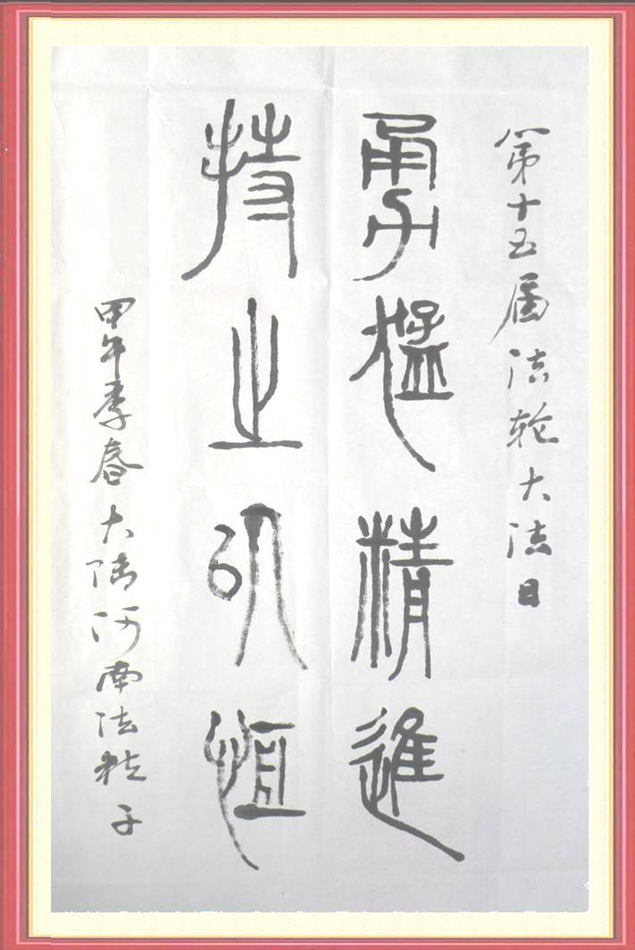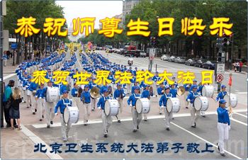 二零零一年暑假,暑期夏令营活动到北京,我在师父的呵护下报名参队,来到了北京,在广场奋力的喊出了“法轮大法好”。在栏杆上、在墙砖上写下“法轮大法好”。
