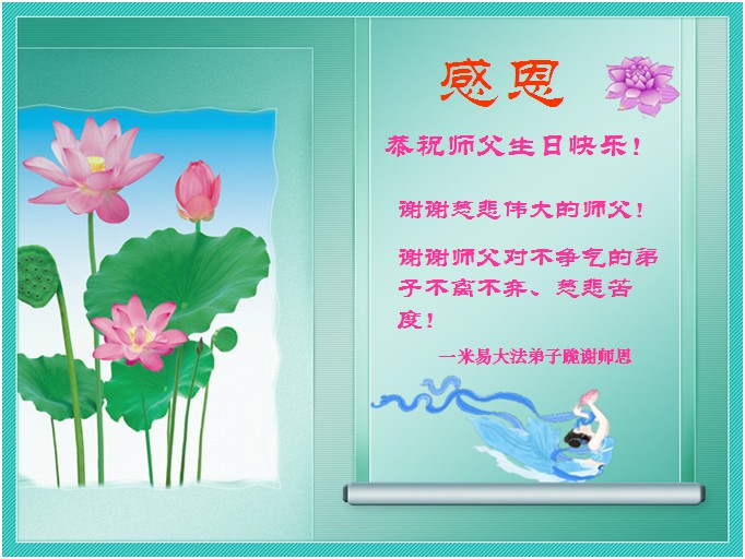 恩师辛苦了!弟子一家三代同修大法,感恩师尊慈悲苦度,我们全家都沐浴在佛恩浩荡中。弟子只有精進实修,做好三件事兑现自己的誓约才是最好的感恩,请师尊放心。
