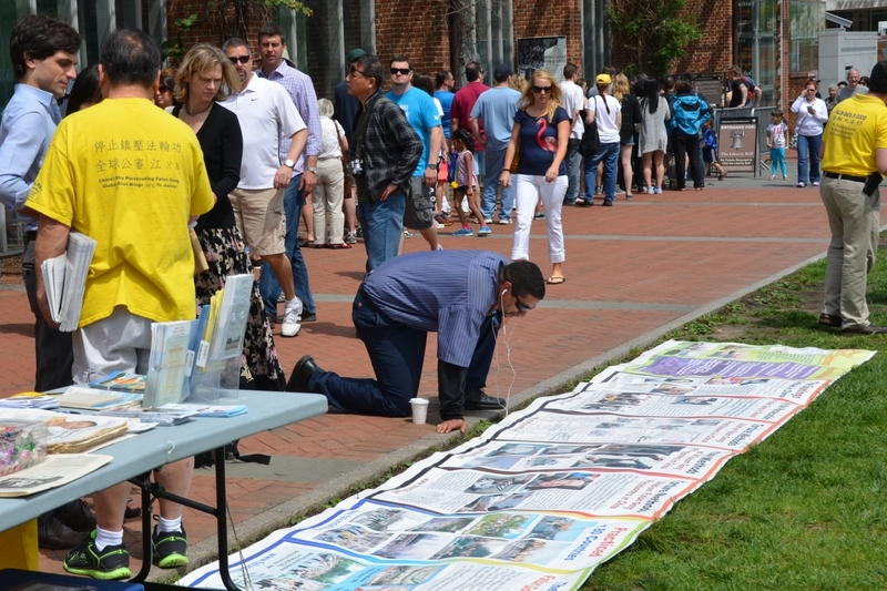 马里兰州的Jay O'Connor先生静静地观看了学员们集体炼功和展板上的法轮功真相。他说:“以前我从报纸上看到过,知道这是一种古老的打坐修炼。我也知道法轮功在中国被迫害之事。他们这样平和地聚会炼功,但只因为不是中共政府想要的,就遭受迫害,实在难以理解。”当他听说中共活摘法轮功学员器官牟取暴利时,非常惊讶,也立即在呼吁制止中共活摘法轮功学员器官的请愿书上签了名。