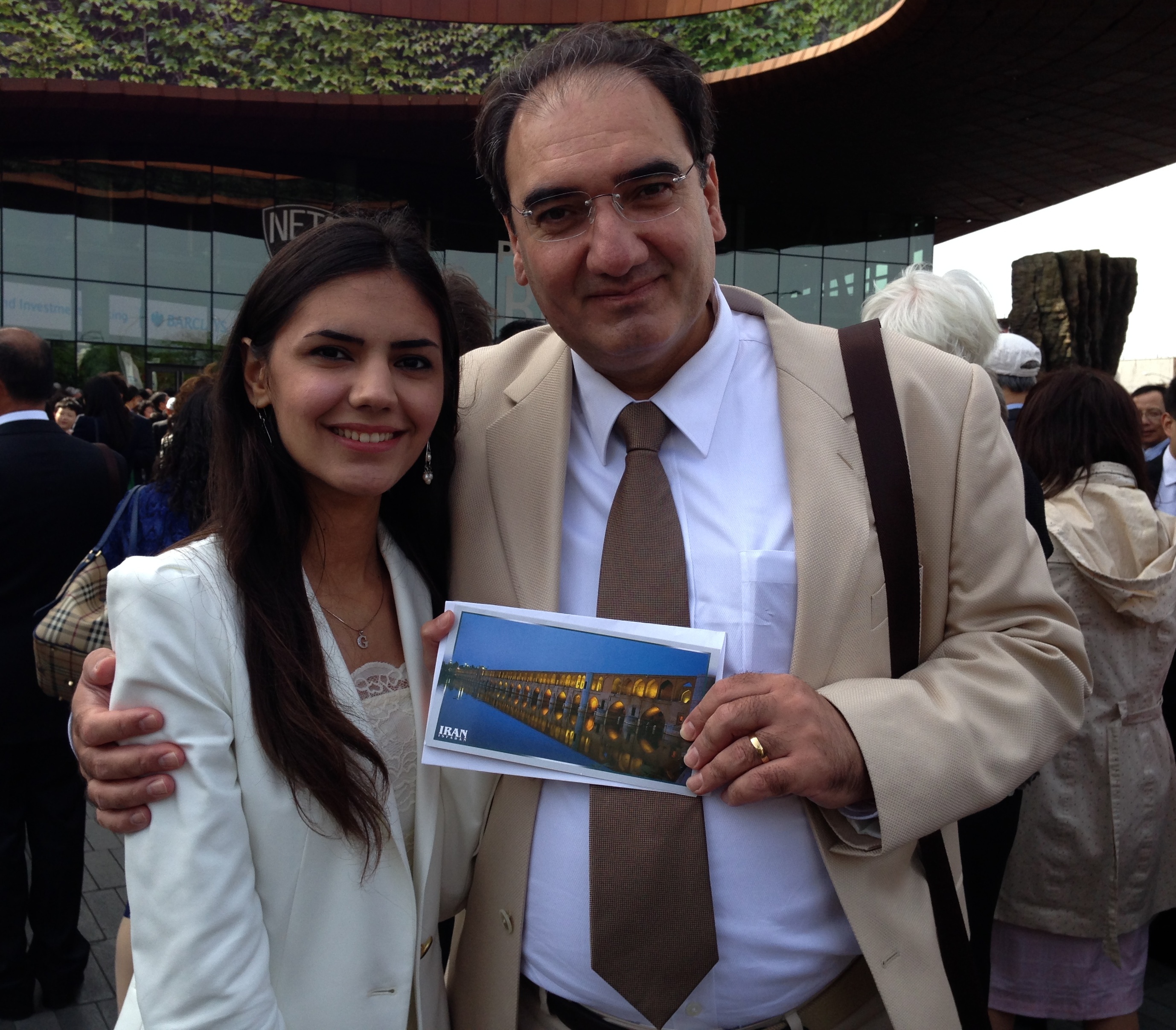 伊朗学员法瑞博兹•达万内(Fariborz Tavanaei)、他的女儿葛吒尔(Ghazal)以及其他几位伊朗法轮功学员一起来参加二零一四年纽约法轮大法修炼心得交流会。法瑞博兹是个市政工程师,也经营企业,这是他第四次参加纽约法会,这次是临到法会召开前终于获得了来美签证,有一位不能来的伊朗同修请他们代为转达他们的心意,献给师父一个生日贺卡。
