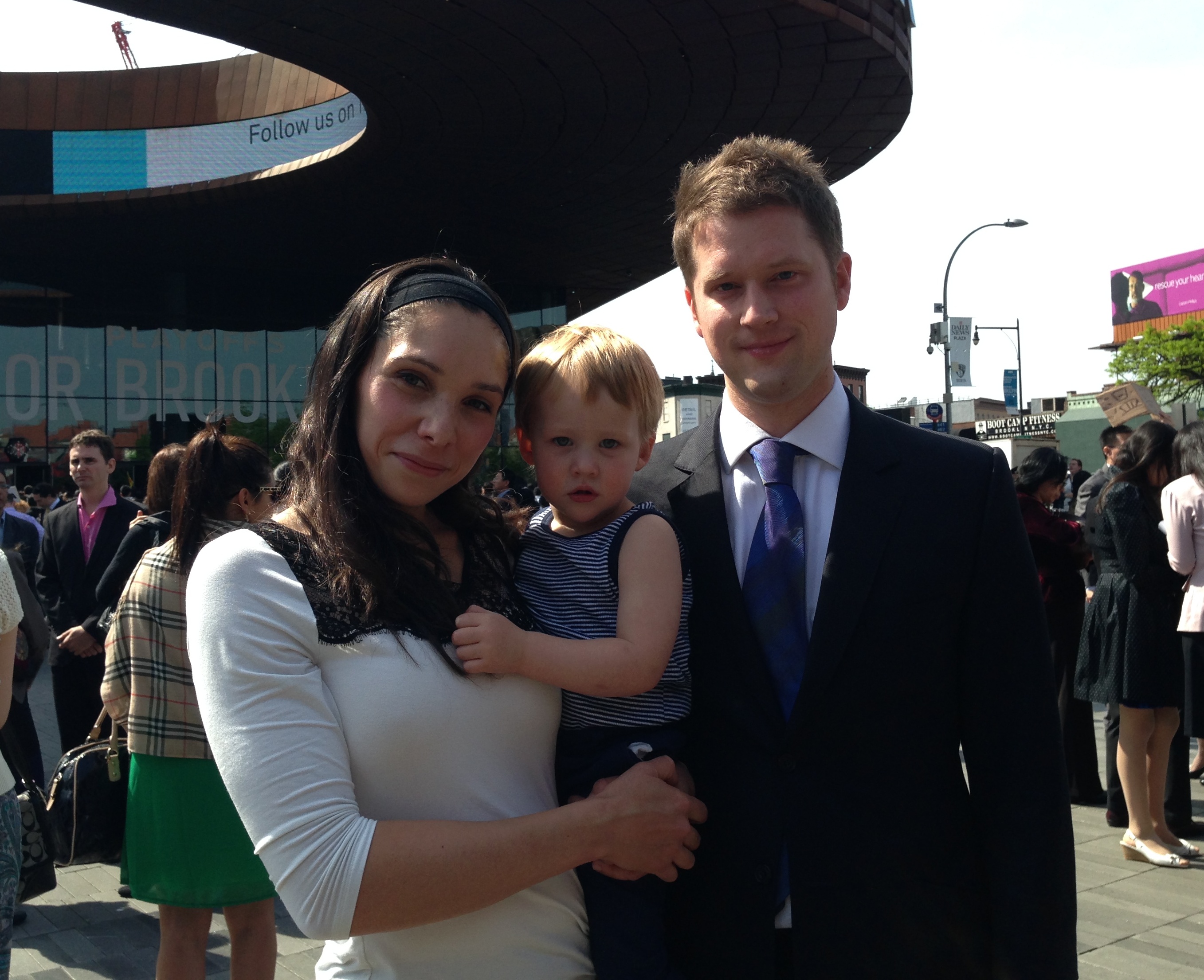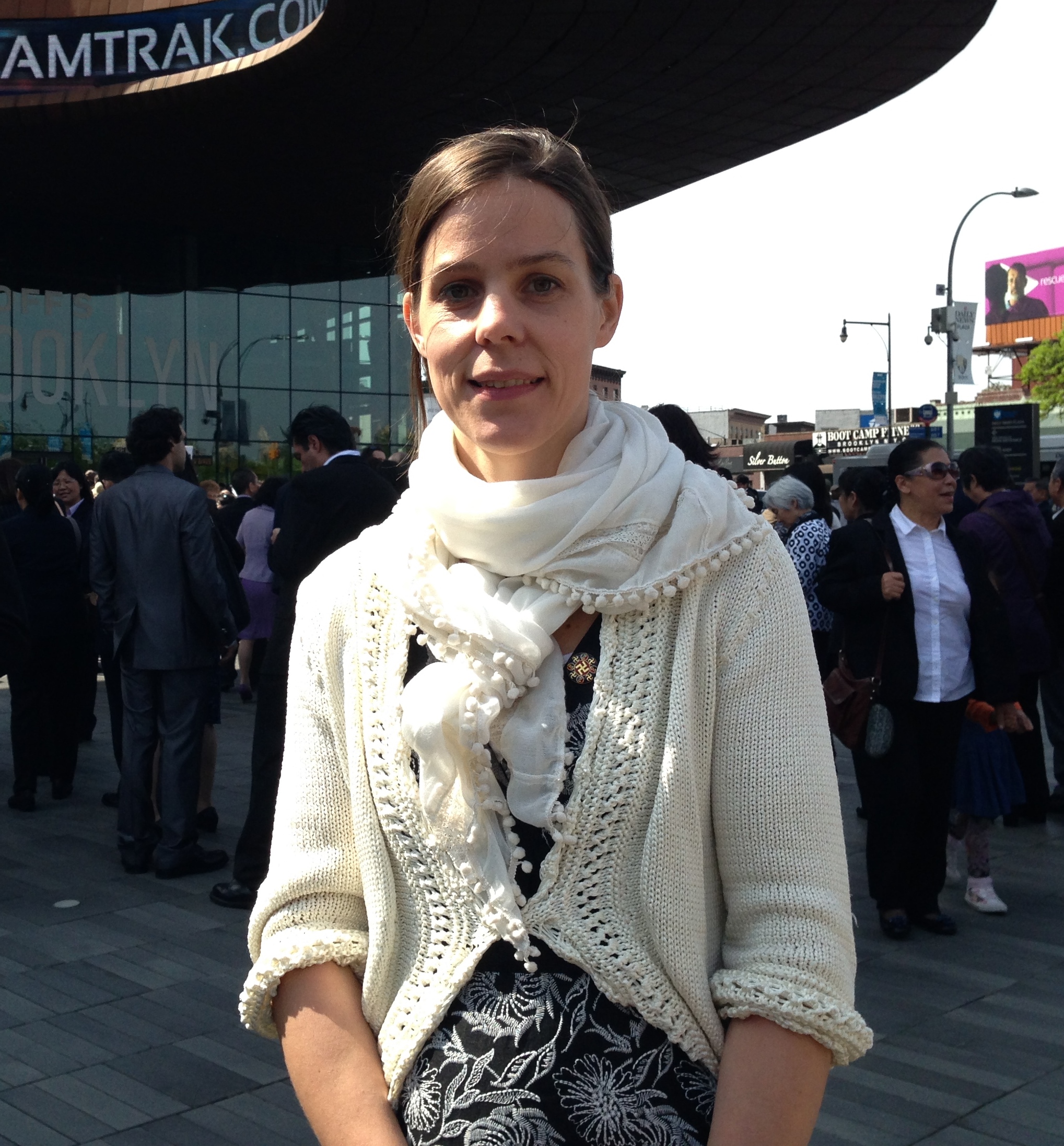 英国法轮功学员乔安娜•康威(Joanna Conway)和丈夫带着二十二个月大的儿子一起从伦敦飞到纽约参加庆祝“世界法轮大法日”的活动并出席二零一四年纽约国际法轮大法修炼心得交流会。乔安娜介绍说最近几年她都努力来参加纽约法会,因为能够聆听师父的讲法和法轮功修炼者的交流让她感到受益无穷,今年又赶上“世界法轮大法日”,她觉得更有意义。她觉得自己心里充满喜悦,更充满对师父和大法的感恩,