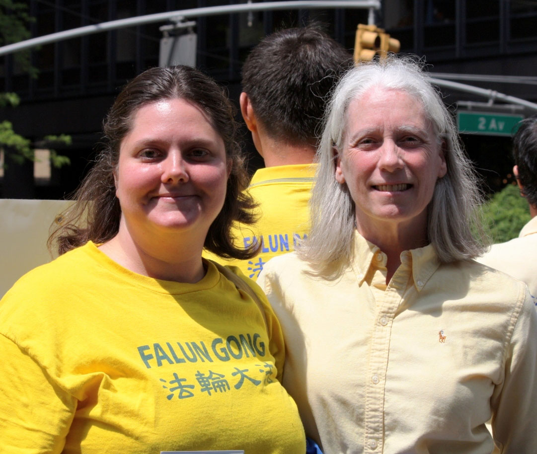 ![]() 来自美国费城法轮功有珍妮(Jennie Sheeks)(左)和安妮医生(Anne Corson) |