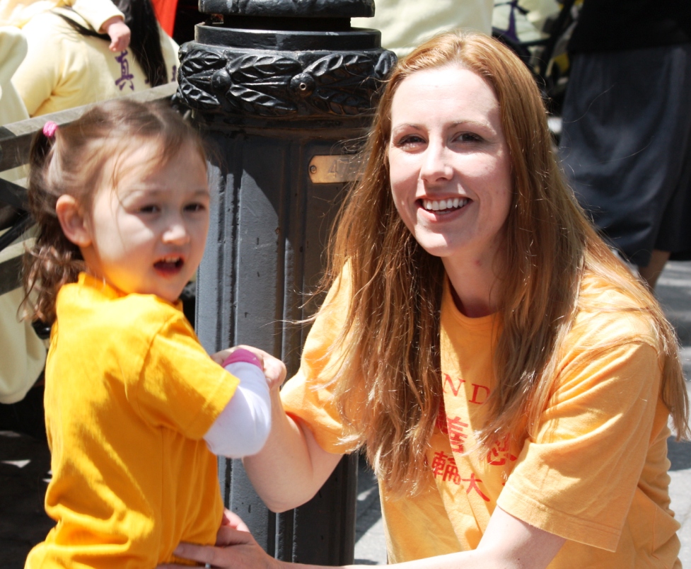 新西兰背景的法轮功学员莎拉(Sarah Matheson)修炼法轮大法已经七年有余,修炼以后她变得更加智慧和成熟,她说:“如果不是修炼大法,我不会明白人生的真正意义和得以今天的智慧和成熟,对此我无法用语言来表达对师尊的感谢,实在太多,无法用语言来表述,”说着,莎拉忍不住感动落泪,“今天看到这么多大法学员在一起游行,我感觉大法学员在一起象一家人一样,总是那么美好祥和与纯净。”