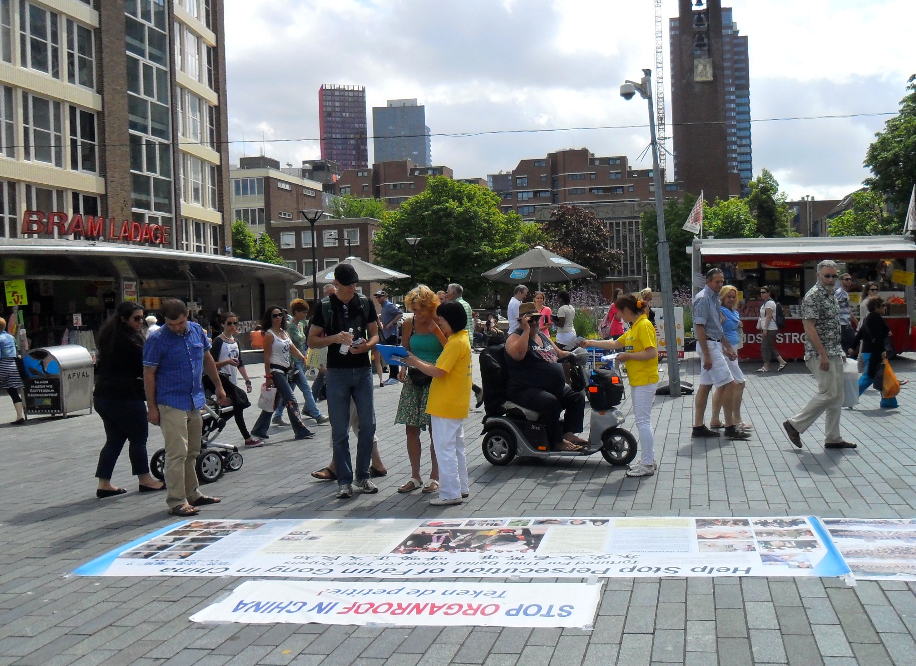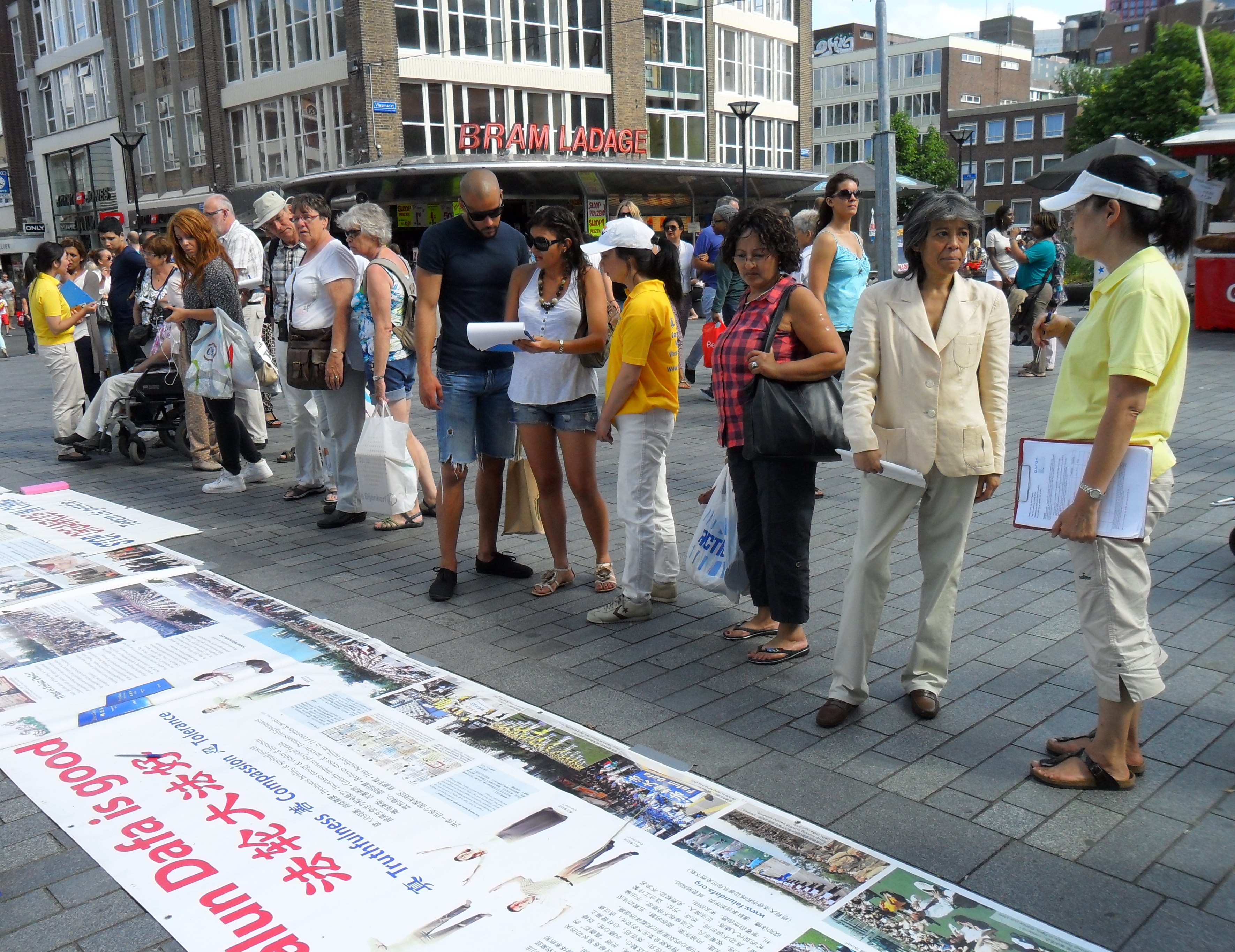 图片报道:荷兰法轮功学员在鹿特丹征签反迫害