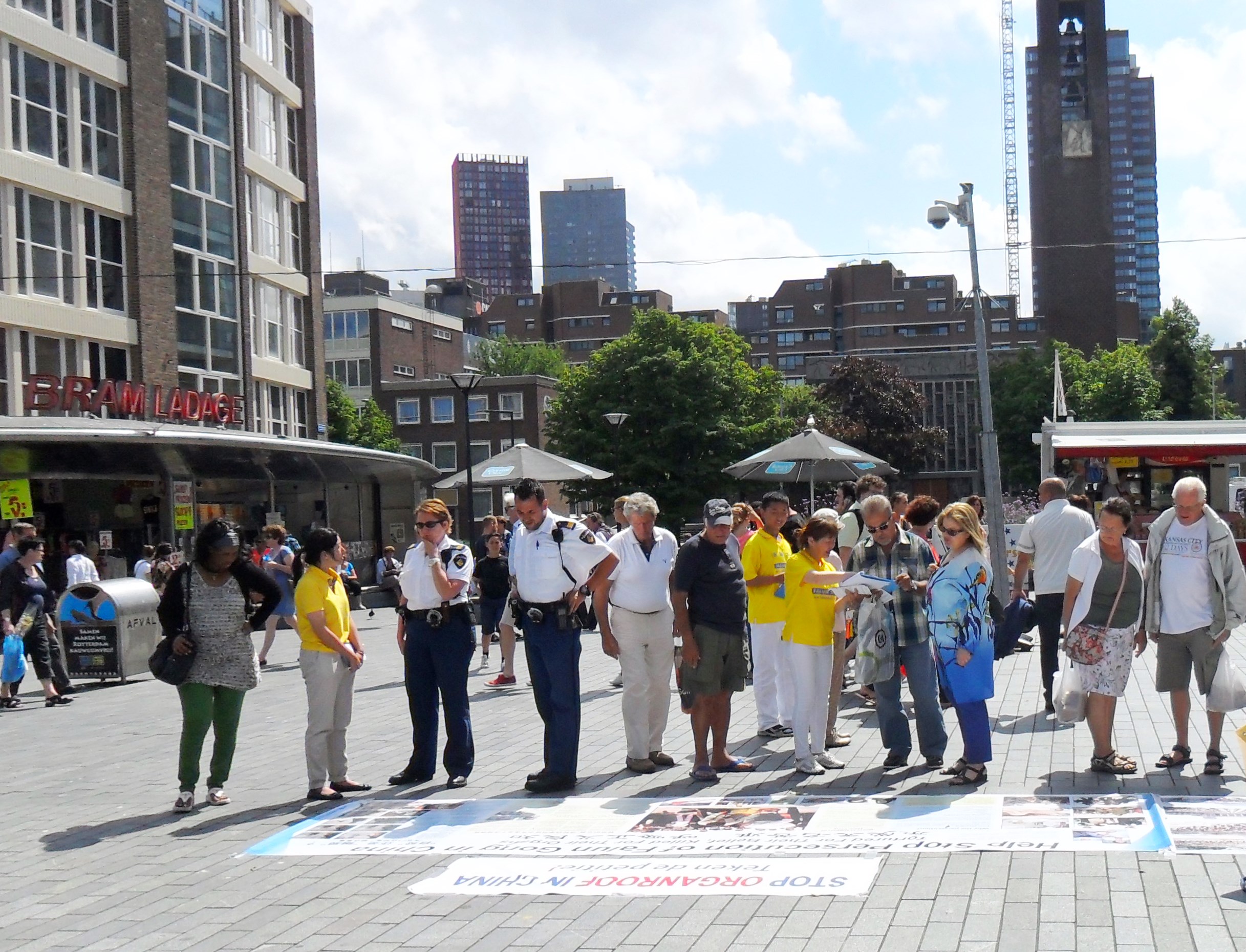 荷兰学员在鹿特丹征签制止中共对法轮功的