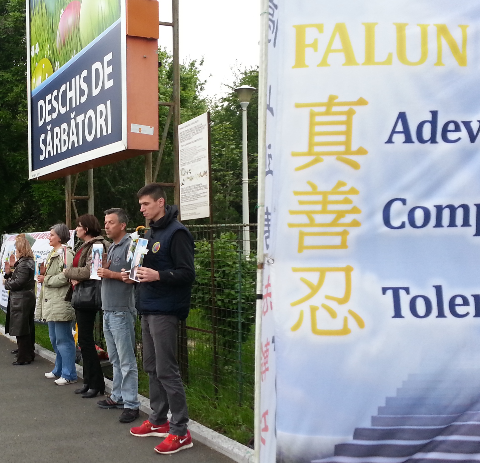 四月二十五日下午四点半,法轮功学员来到布加勒斯特的中使馆门前,抗议中共对法轮功长达十五年的残酷迫害。学员们在使馆门前展示中共当局对法轮功进行迫害的照片和横幅,并向路人讲述迫害详情。