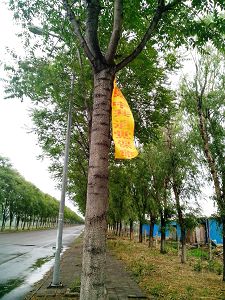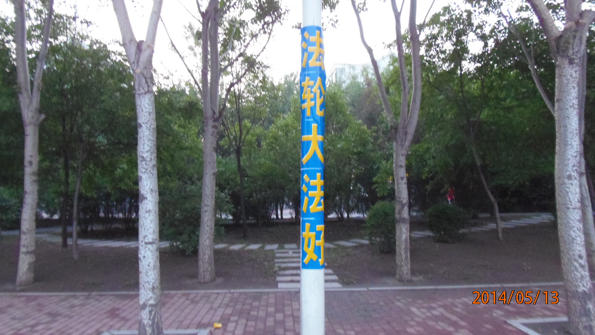 1992年5月13日,慈悲的师尊将法轮大法传出,22年来全世界有难以计数的人修炼法轮功而受益。为了纪念这个特殊的日子,把“5.13世界法轮大法日”告诉世人,表达弟子对师尊的敬意,河北某城市的大法弟子在5月13日这天的中午12点以后,在城市的主干道挂出了6条大条幅,其中一个3.5米长,1尺4寸宽,上写着“普天同庆5.13世界法轮大法日”。另还有一个3米长,一个2.5米长的条幅,上写着“欢庆5.13世界法轮大法日”和“法轮大法好”。 黄底红字和红底黄字的条幅十分醒目,在阳光下金光灿灿,格外庄严耀眼,过路的行人纷纷驻足观看,一个小伙子一面念着“法轮大法好”,一边拿手机拍照,记录下这神圣的场景和瞬间。直到下午2点30分,条幅仍在那里挂着,真是大法的威力!
