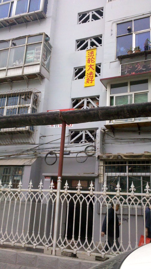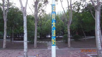• 大陆河北某城市的大法弟子挂真相条幅庆世界法轮大法日