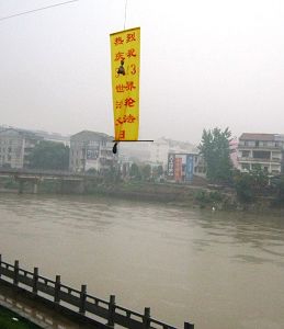 大陆各地庆祝世界法轮大法日悬挂的真相条幅