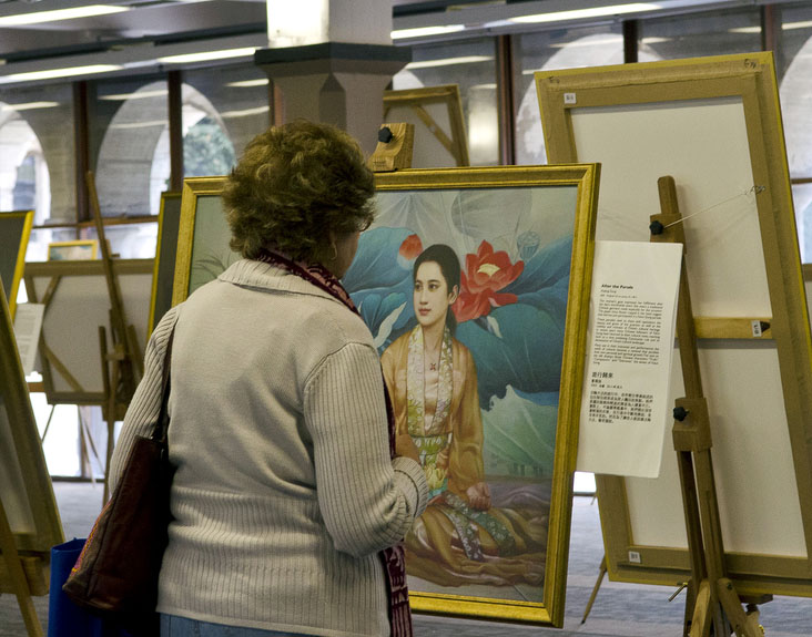 参观画展的还有不少是华人。一位在西澳大学做研究工作的中国学者来到展厅,很认真地观看每一幅作品。尽管因为一些顾忌,这位学者不愿多说什么,但他表示,他清楚中国国内中共对法轮功学员的残酷迫害。
